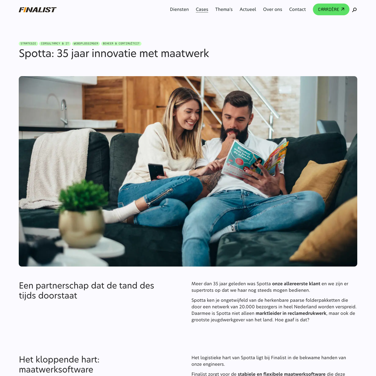 Spotta's partnership with Finalist showcases their expertise in delivering stable, flexible custom software that meets evolving business needs. Through advanced engineering, Spotta ensures a seamless user experience, robust security, and a system that adapts to their unique requirements. This collaboration highlights Spotta's commitment to innovation and reliability, enabling Finalist to thrive in a dynamic market. Spotta's flexible logistics infrastructure supports this transformation, ensuring efficiency and scalability in every aspect of operations. The partnership demonstrates Spotta's ability to innovate while maintaining a strong foundation, driving continuous improvement and success for both parties.