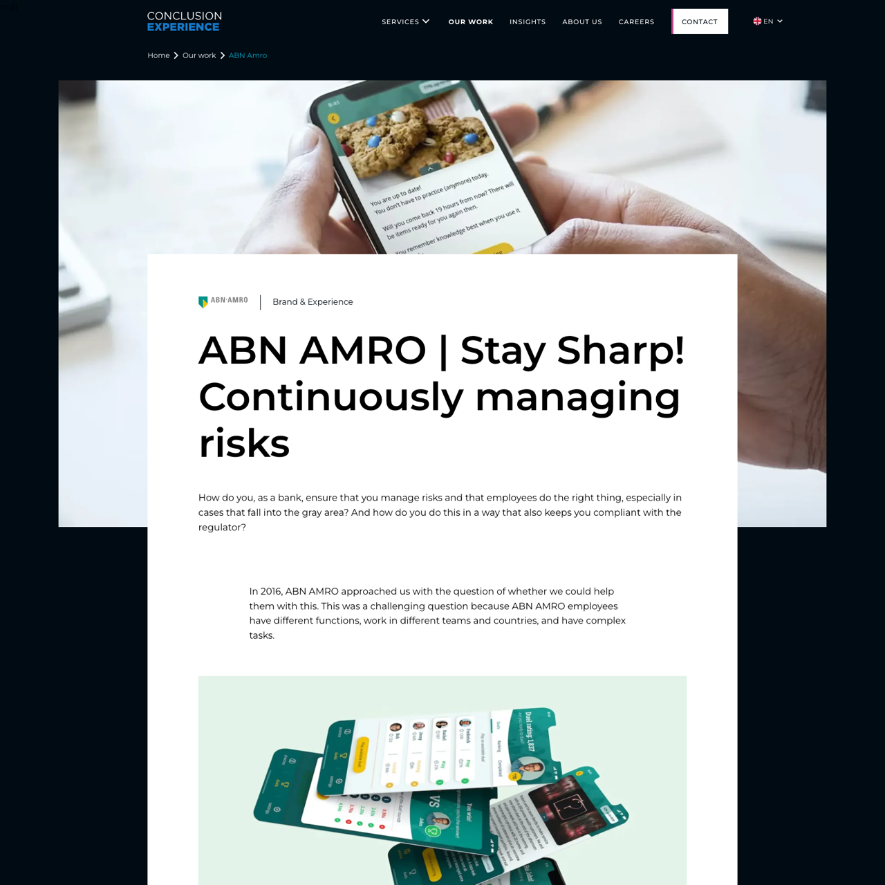 ABN AMRO partnered with Conclusion Experience to develop a PowerApp solution that trains employees to identify non-financial risks in real-time. By using gamified microlearning, the platform helps staff make ethical decisions in complex scenarios, such as handling a customer with dementia. Since 2017, the tool has enabled employees to proactively manage risks while maintaining compliance. The 5-year anniversary of the PowerApp deployment highlights its role in fostering ethical behavior and decision-making across ABN AMRO's global workforce.