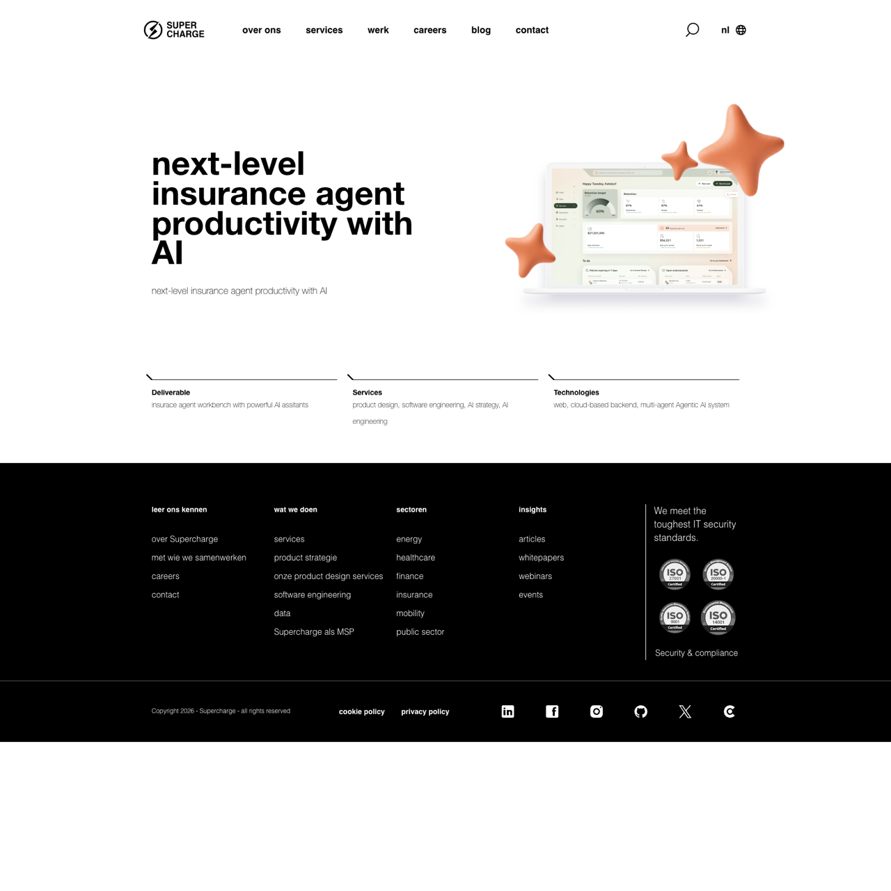 Supercharge developed a cutting-edge insurance agent productivity platform leveraging AI to enhance workflow efficiency. The solution integrates a multi-agent Agentic AI system with a web-based backend, enabling agents to manage complex tasks with greater precision. Agents benefit from intelligent task automation, real-time data analysis, and personalized recommendations, significantly boosting their productivity. This platform not only streamlines daily operations but also empowers agents to focus on high-value client interactions, leading to improved performance and client satisfaction.