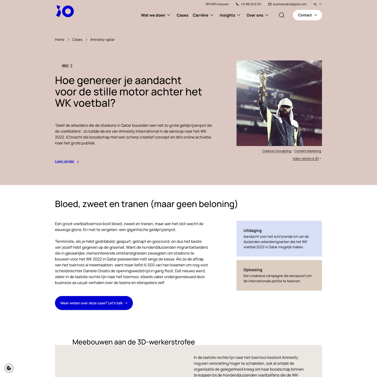 Amnesty International launched a creative campaign to highlight the sacrifices of migrant workers who built the World Cup stadiums in Qatar. The initiative used a striking 3D worker's strike video and a 30-second TV spot to draw attention to the plight of those who worked in dangerous conditions. By focusing on the emotional and physical toll of the construction, the campaign aimed to spark global awareness and support for the workers. The effort successfully raised awareness and generated momentum for the petition, emphasizing the importance of recognizing the hidden cost of the World Cup.