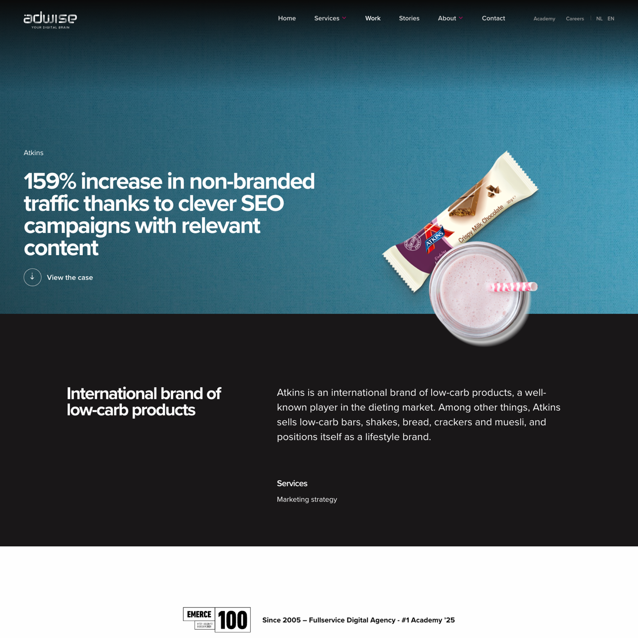 Atkins transformed its digital strategy to focus on audience engagement over product sales, achieving a 50% increase in non-branded organic traffic through content that addressed lifestyle needs. By prioritizing user-centric content, the brand drove conversions and mapped LTV to identify loyal customers. The campaign highlighted the shift from diet-focused messaging to lifestyle branding, emphasizing value-driven content and long-term customer retention. The results underscored the importance of aligning SEO with audience expectations to sustain growth in the evolving market.