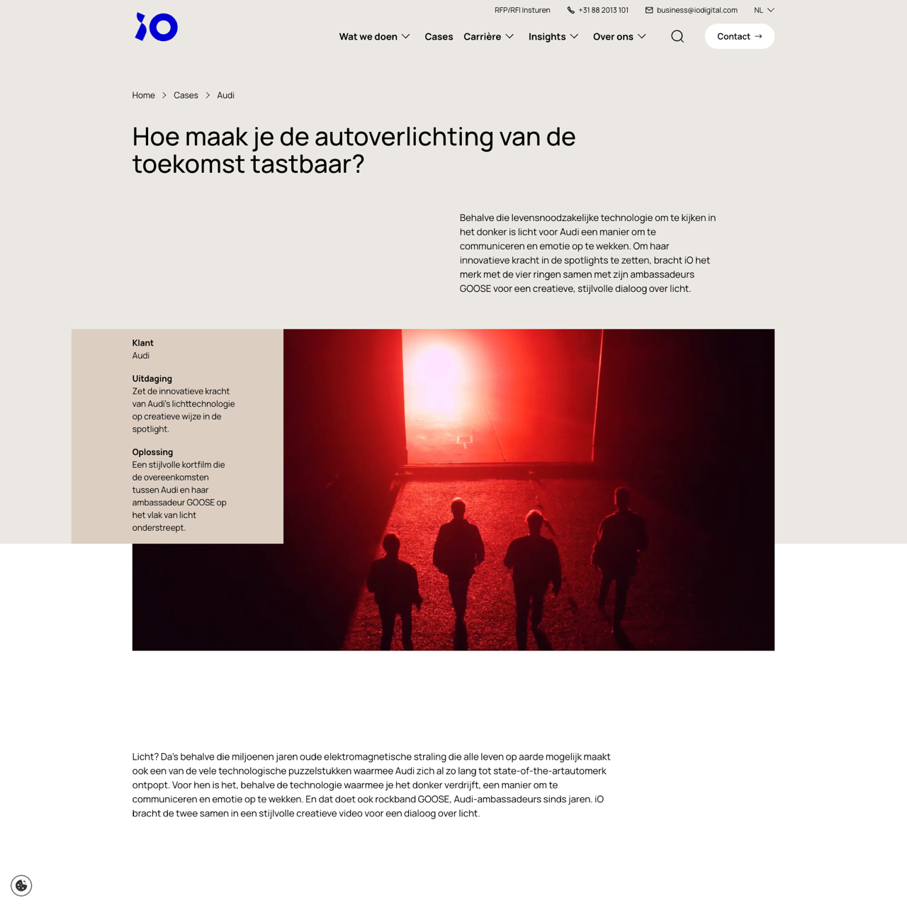 Audi and GOOSE collaborated to create a creative video that highlighted the intersection of light technology and artistic expression. The project aimed to showcase Audi's innovative lighting solutions through a narrative that blended the brand's engineering expertise with the rock band's artistic flair. The video featured a dynamic dialogue about light, emphasizing how it serves both functional and emotional purposes in modern automotive design. This creative partnership not only elevated Audi's visibility but also reinforced the brand's commitment to innovation and artistic storytelling. The project was part of a broader strategy to engage audiences through content that goes beyond mere product promotion, offering a unique perspective on the role of light in shaping the future of automotive design.