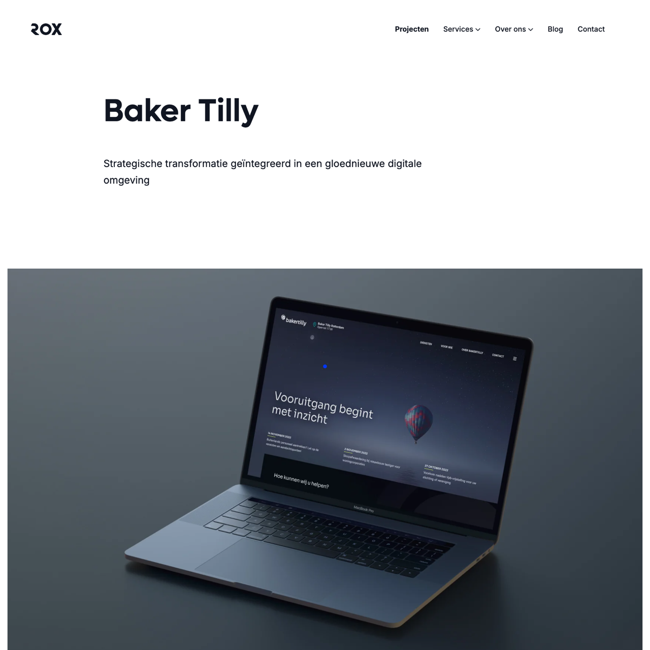 Baker Tilly Nederland faced the challenge of managing a vast amount of content across their CMS, frontend, and server-side infrastructure. ROX Digital optimized the platform to ensure seamless content delivery and improved user experience. The redesigned website incorporated 40 meticulously crafted components, aligning with Baker Tilly's strategic communication goals and WCAG 2.1 AA compliance. Key elements included a cohesive customer journey, enhanced SEO, and KPI tracking to strengthen their digital presence. The project successfully integrated the new website into Baker Tilly's ecosystem, supporting their mission to deliver professional services and maintain a robust client base.