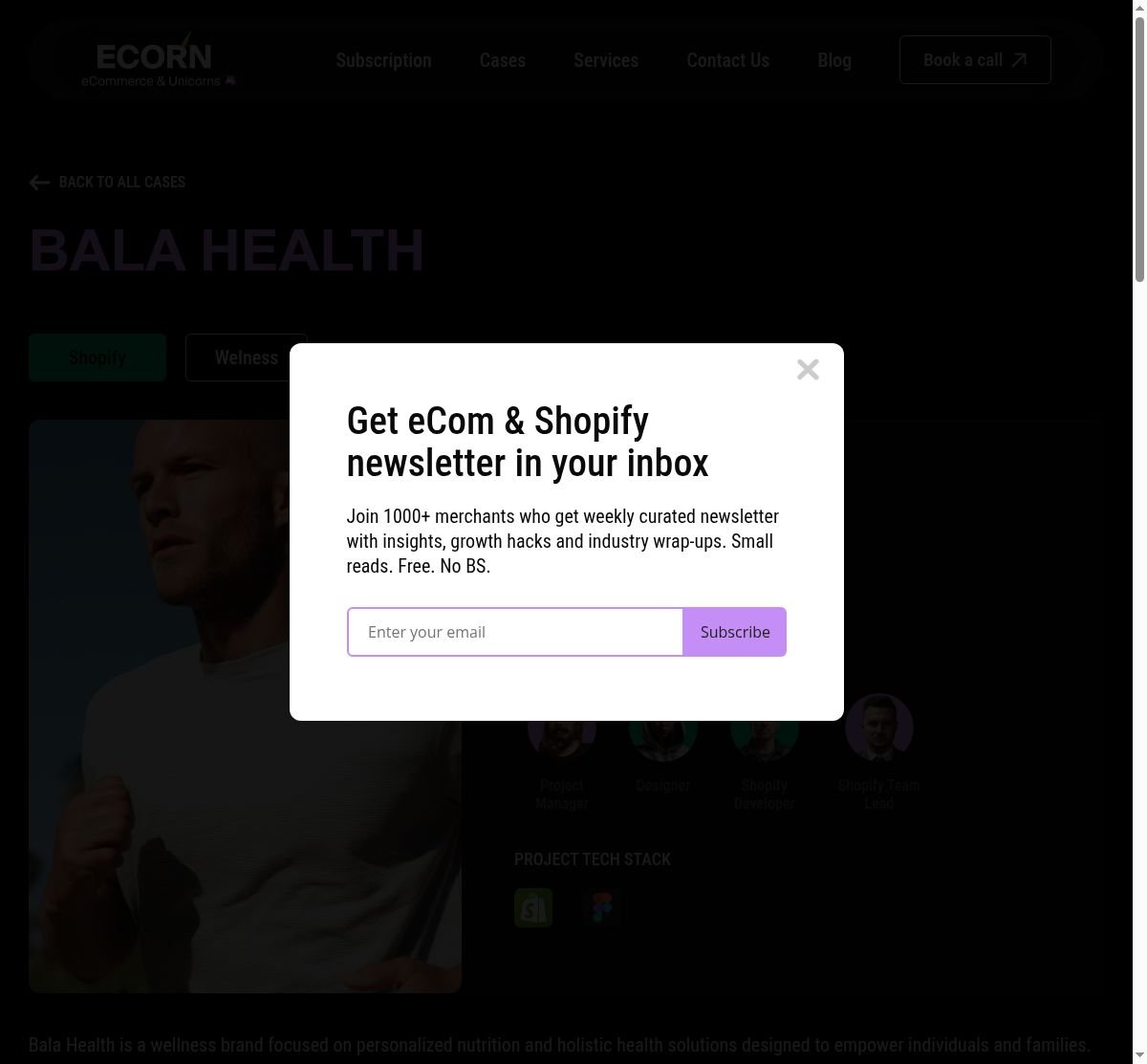 ECORN Agency partnered with Bala Health, a wellness brand committed to personalized nutrition and holistic health solutions, to create a unique and compelling online presence. The project required a comprehensive redesign of their main website using Webflow, followed by a seamless transfer to Shopify to enable e-commerce functionality. The goal was not just a visually appealing website, but one that was user-friendly and aligned with Bala Health’s brand identity.