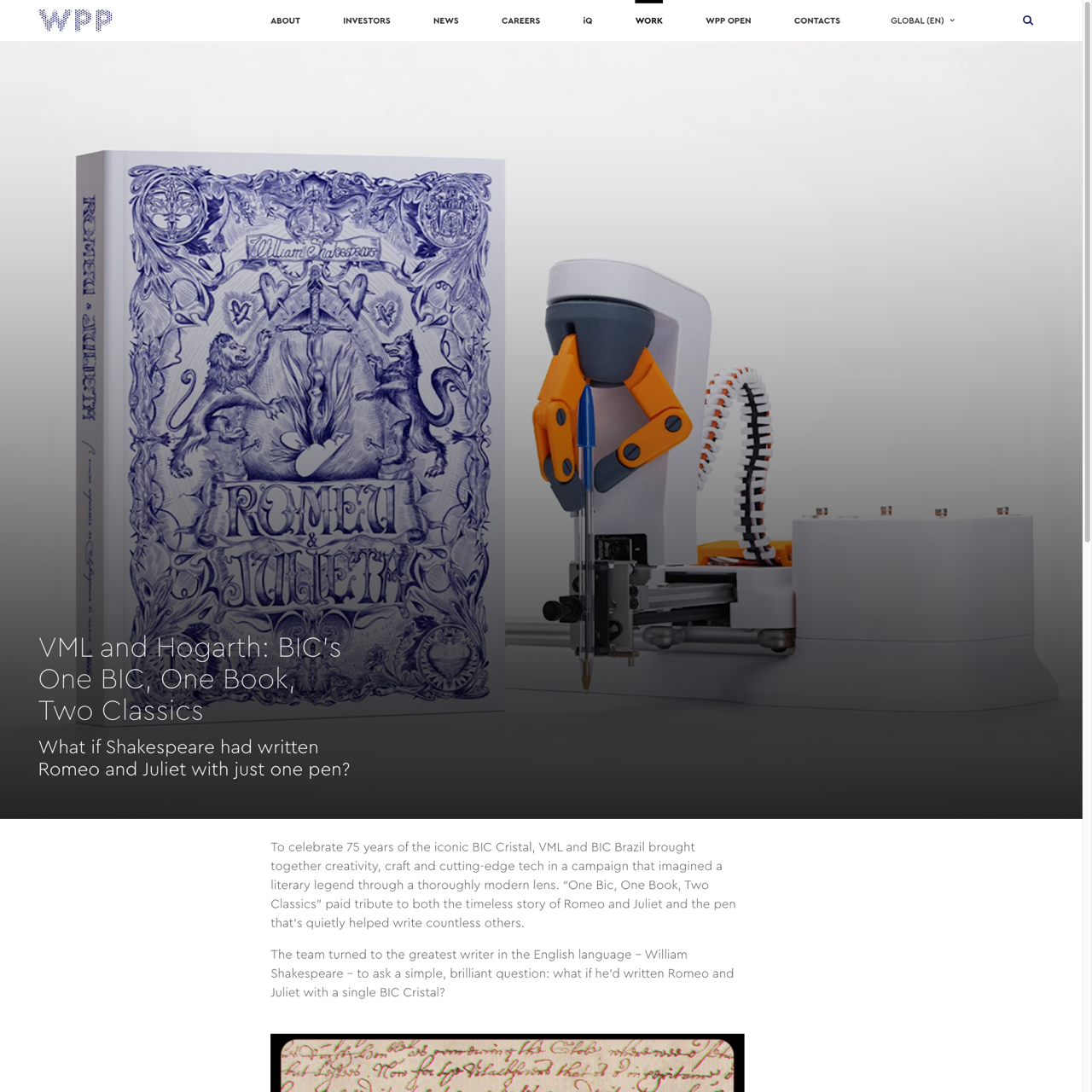 In a bold collaboration, BIC partnered with VML to reimagine Shakespeare's Romeo and Juliet through a modern lens, leveraging cutting-edge technology to celebrate the iconic BIC Cristal. The campaign, titled 'One BIC, One Book, Two Classics,' combined literary storytelling with innovative design, using augmented reality and interactive elements to engage audiences. By transforming a timeless tale into a digital experience, the campaign not only honored BIC's legacy but also showcased the power of technology to bridge tradition and innovation. The initiative received critical acclaim for its creative vision and seamless integration of art and tech, solidifying BIC's reputation as a leader in creative innovation. The campaign's success highlighted the brand's ability to evolve while preserving its core values, offering a compelling example of how modern storytelling can thrive in a digital age.