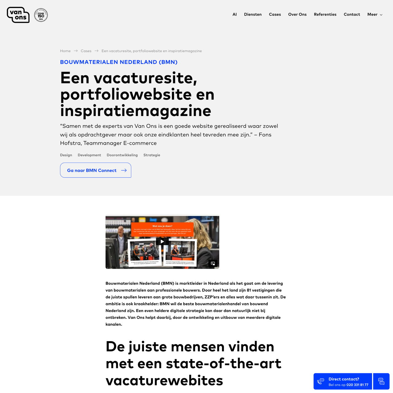 BMN Connect helped BMN expand their digital recruitment strategy, leveraging Google Maps and iOS landing pages to streamline job search and selection. The platform introduced advanced filters, real-time location tracking, and seamless integration with SEA for targeted candidate outreach. By simplifying the hiring process, BMN improved candidate engagement and reduced time-to-hire. Fons Hofstra, Teammanager E-commerce, praised the platform's intuitive design and effectiveness in connecting skilled professionals with BMN's diverse workforce. The solution enhanced user experience and operational efficiency, positioning BMN as a leader in the building materials industry.