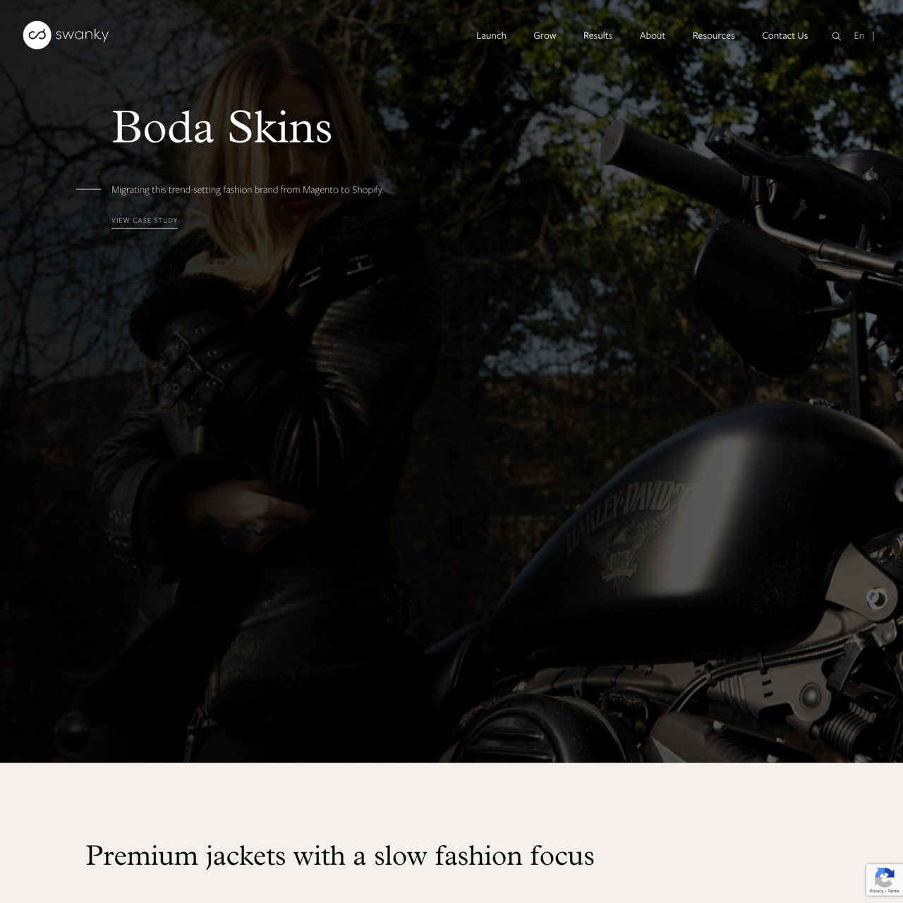Boda Skins faced technical challenges and limited customization when migrating from Magento to Shopify Plus. Swanky facilitated a smooth transition, creating a stylish and user-friendly store that enhances the brand's online presence. The new platform allows for quick changes and a seamless checkout experience, as highlighted by Boda’s Global Manager, Georgie Williams. The migration resulted in a more intuitive shopping journey and improved customization options, solidifying Boda Skins’ position in the fashion market.