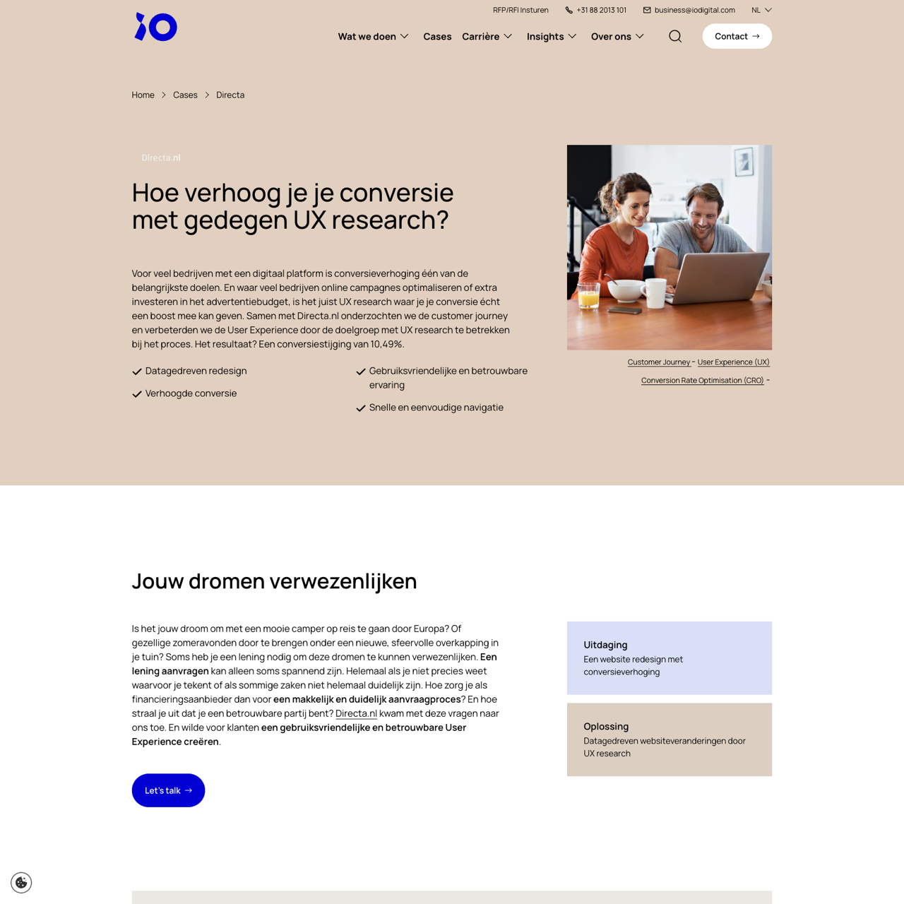 Directa.nl partnered with iO Digital to enhance user experience and drive conversion. By conducting UX research, they redesigned the platform to improve clarity and ease of use, resulting in a 10.49% conversion boost. The redesign focused on simplifying navigation and ensuring a seamless user journey, making the process more intuitive for borrowers. This strategic approach not only increased engagement but also strengthened the brand's reputation as a reliable financial partner. The outcome demonstrated the power of user-centered design in achieving measurable business results.