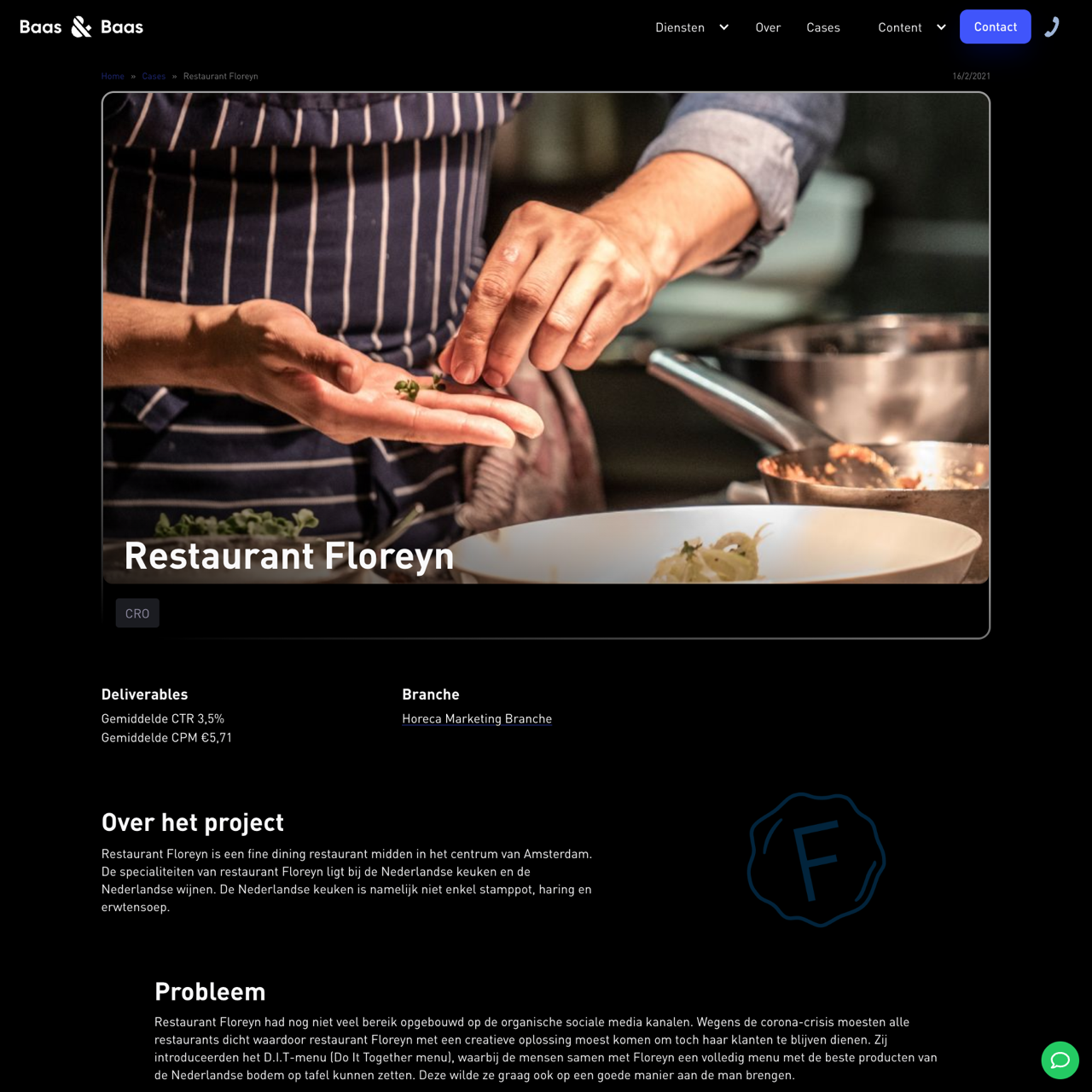 Baas & Baas helped Restaurant Floreyn increase its online presence and sales through targeted Facebook campaigns. The campaign focused on reaching local residents interested in fine dining, food & wine, and dinner experiences. The result was over 130,000 impressions with a 3.51% CTR, significantly above the average for the Netherlands. The campaign also drove over 40 sales of the D.I.T. menu, demonstrating the effectiveness of the strategy in engaging the right audience and driving conversions.