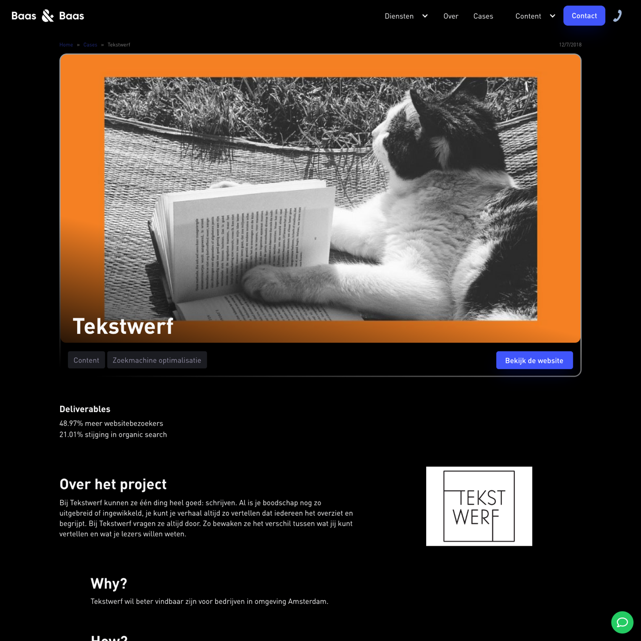 Baas & Baas optimized Tekstwerf's SEO strategy to improve their visibility in Amsterdam's business environment. Through linkbuilding and keyword ranking improvements, Tekstwerf saw a 48.97% increase in website traffic and a 21.01% rise in organic search results. The success highlights the effectiveness of targeted SEO efforts in driving higher rankings and engagement. Tekstwerf now ranks higher in Google for relevant keywords, ensuring better visibility for local businesses.