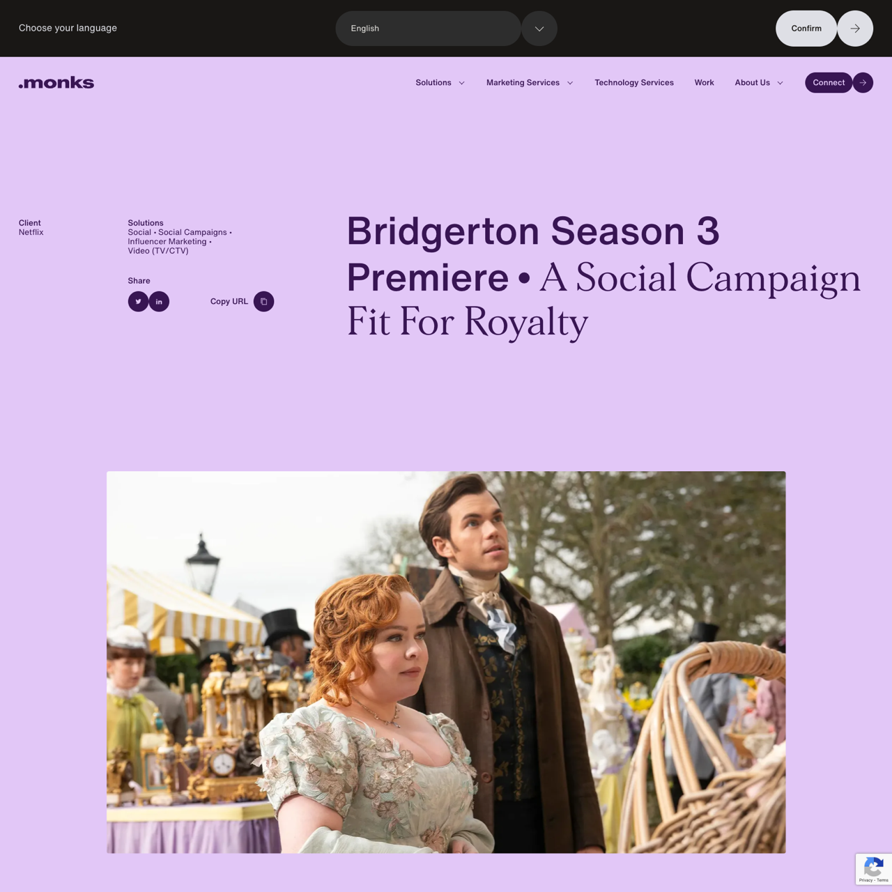 Monks crafted a social media campaign for Bridgerton Season 3, leveraging a Parisian premiere with a canine guest and influencer events. The campaign boosted brand awareness and engagement, capturing the magic of the event through real-time content. The Source partnered with Beastly to create viral content, including a reaction video with drag queens that amplified the season's popularity. The campaign achieved high visibility and audience interaction, solidifying The Source's presence in the entertainment space.