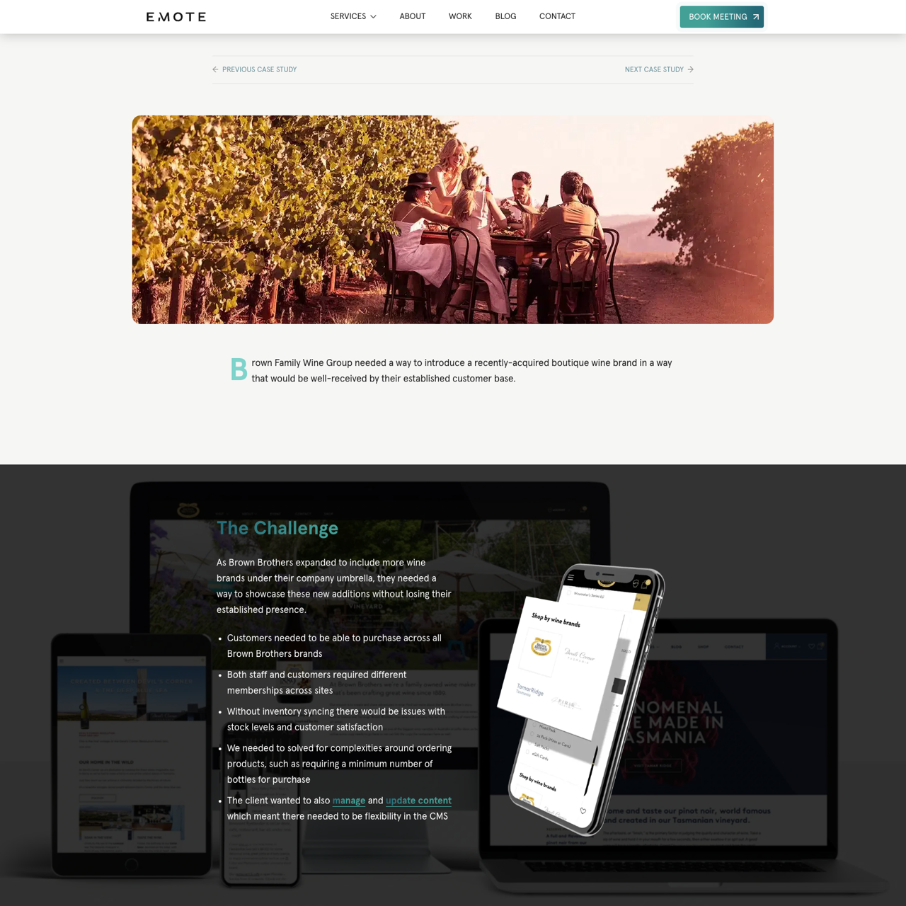 Brown Brothers faced challenges managing multiple wine brands with disparate inventory and membership systems. Emote Digital designed a unified multisite CMS to streamline operations, ensuring seamless customer experiences across all brands. By implementing automated inventory sync and customizable membership options, the solution enhanced brand consistency and operational efficiency. The result was a cohesive online presence that empowered customers to explore all Brown Brothers' offerings effortlessly, reinforcing the brand's commitment to innovation and customer-centricity.