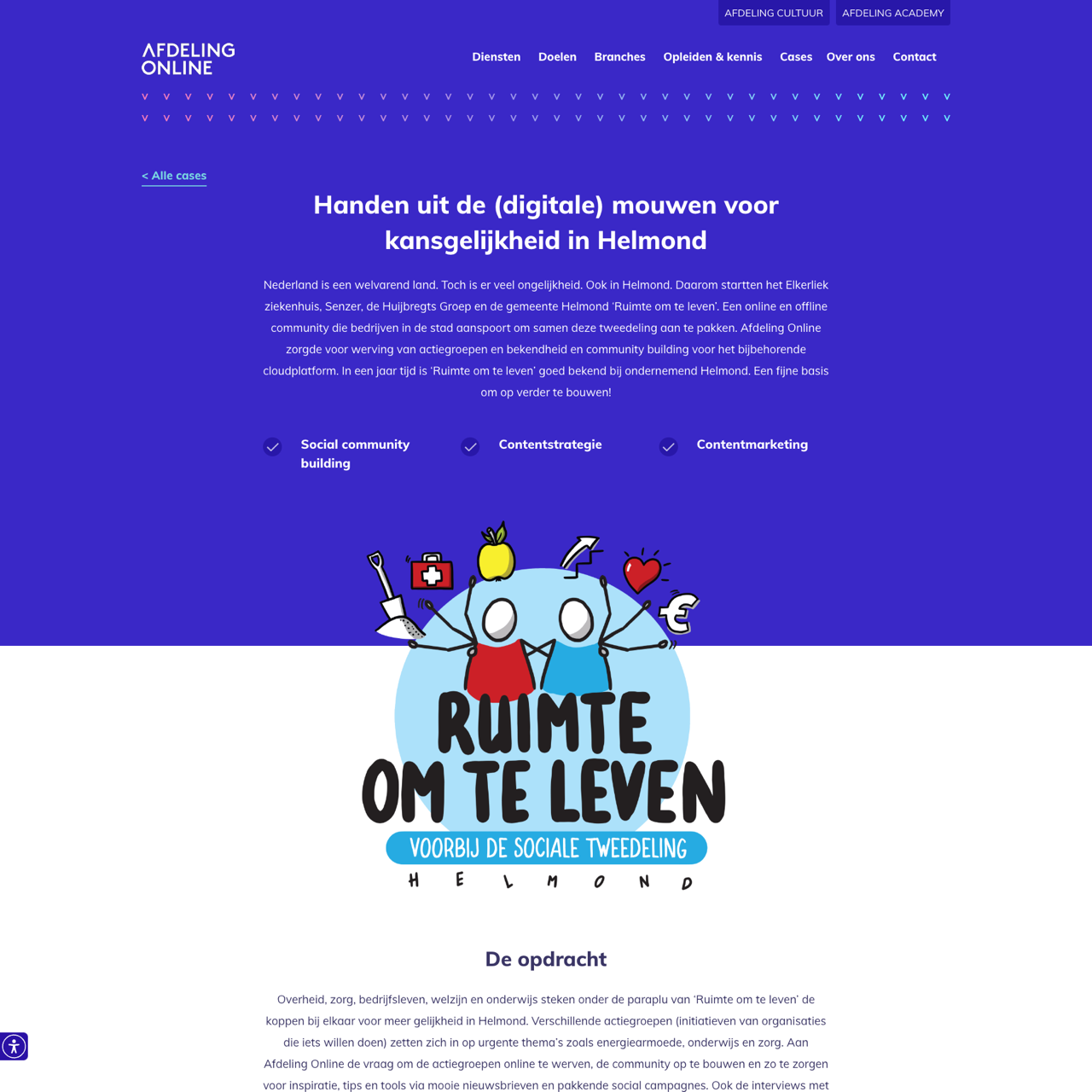 The Elkerliek ziekenhuis, Senzer, Huijbregts Groep, and gemeente Helmond launched 'Ruimte om te leven' to address inequality in Helmond. Afdeling Online played a key role in building online communities and driving engagement for the cloud platform. Through strategic LinkedIn marketing and community building, the initiative successfully raised awareness and fostered collaboration among local businesses. The campaign highlighted the importance of connecting people through shared goals and actionable strategies, demonstrating how digital platforms can drive meaningful change in a community.