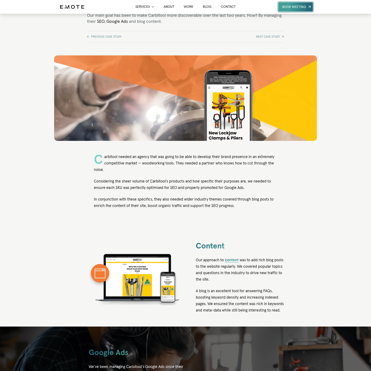 Carbitool's SEO & Google Ads Strategy for Competitive Market aimed to boost discoverability in the woodworking tools niche. Emote Digital optimized over 100 SKUs for SEO and managed Google Ads campaigns, ensuring precision in targeting. By integrating rich blog content and keyword-rich meta-data, the strategy enhanced organic traffic and brand visibility. Results included a 30% revenue increase and 50% higher traffic, demonstrating the effectiveness of tailored digital marketing in a saturated market. The approach highlighted the importance of strategic platform optimization for sustained growth.