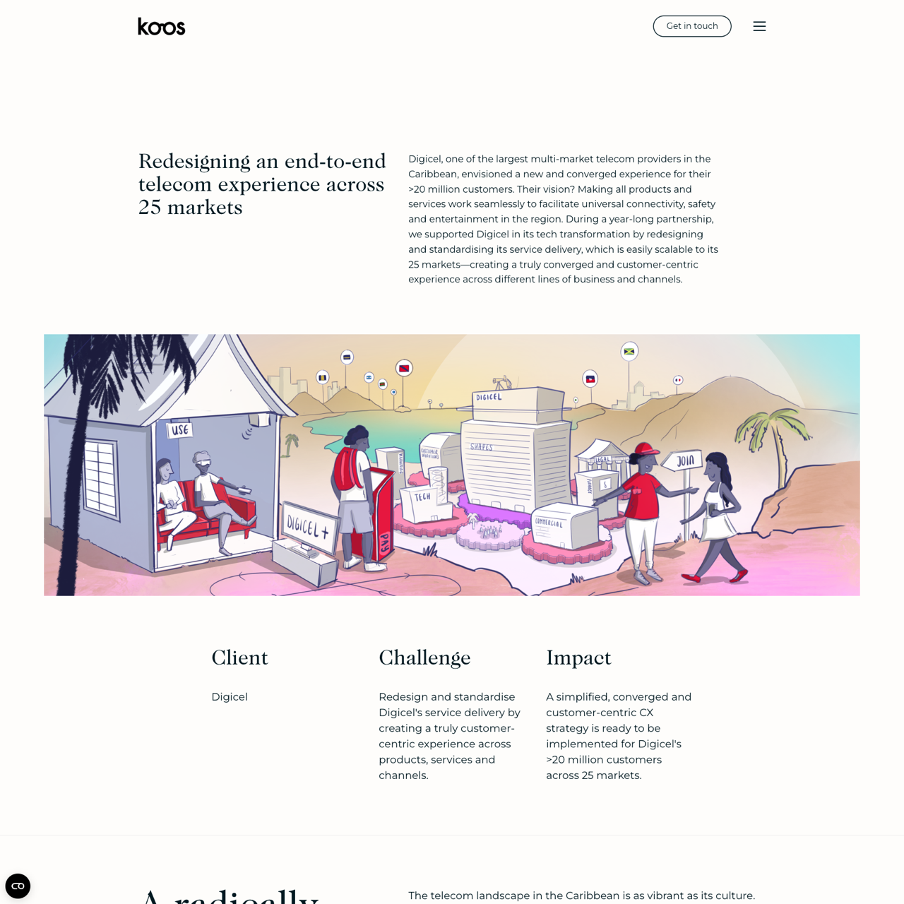Digicel faced challenges with fragmented customer journeys and siloed operations across 25 markets. Koos crafted a converged, customer-centric strategy that streamlined services and processes, aligning stakeholders to deliver a unified experience. By leveraging local insights and technical compliance, the solution future-proofed Digicel’s telecom operations in the Caribbean. The result was a simplified, self-served platform that enhanced efficiency and customer satisfaction across all markets.