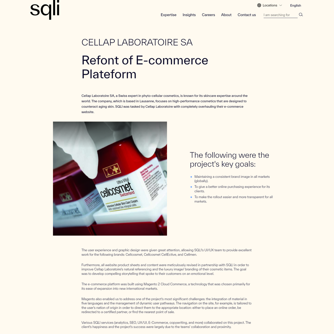 SQLI partnered with Cellcosmet to overhaul their e-commerce platform using Magento 2 Cloud Commerce. The project focused on improving user experience, multilingual support, and dynamic navigation based on user location. The result was a seamless, user-friendly site that boosted conversions and reinforced Cellcosmet's luxury branding. The platform enabled efficient international expansion with tailored pathways for ordering, partner redirection, and local sales. The new site was well-received by Cellcosmet's partners and customers, with seven rollouts scheduled for 2021, including China and the United States. The collaboration ensured a cohesive, data-driven experience that aligned with Cellcosmet's global strategy.