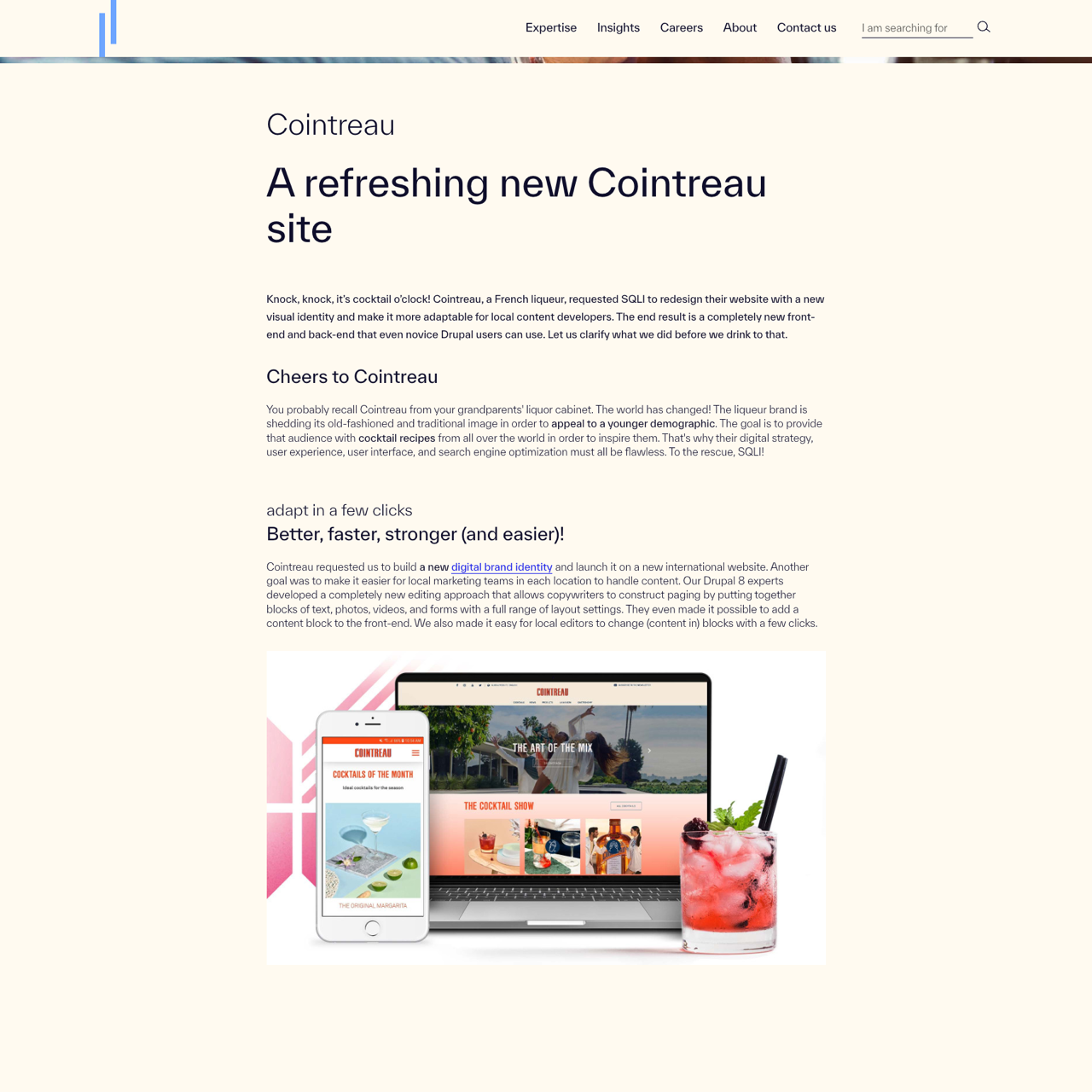Cointreau partnered with SQLI to revamp their Drupal 8 platform, creating a fresh visual identity that appeals to a younger audience. The redesign focused on simplifying content creation for local marketers, enabling easy block editing and layout customization. By integrating a robust content distribution system, the site now allows regional teams to replicate and translate global content seamlessly. The result is a more dynamic, user-friendly platform that balances innovation with accessibility.