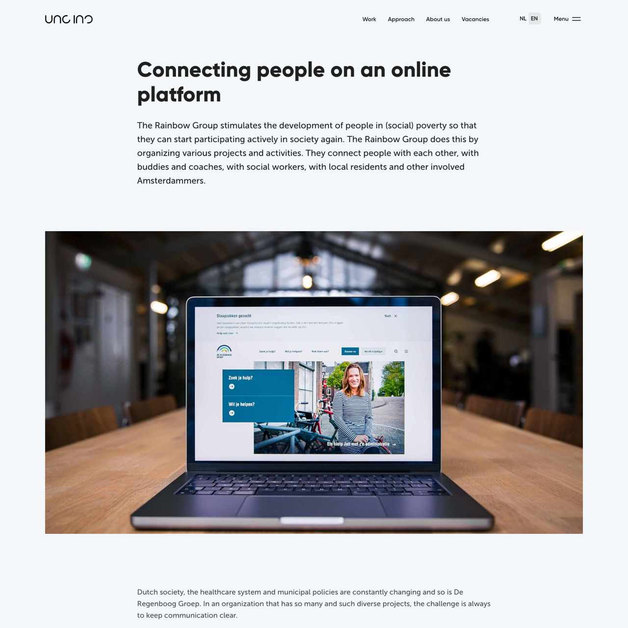 The De Derde Schinkel team developed a comprehensive online platform to enhance communication and engagement among participants in their social projects. By collaborating with the Communication department, they created a website tool to match individuals with appropriate volunteer opportunities, a webshop for online donations, a magazine to share stories, and targeted campaigns. These initiatives centralized internal communication through an intranet site and launched a dedicated website for Amsterdam Underground, a local organization that shares personal stories of street life. The platform improved accessibility and fostered stronger connections between volunteers, beneficiaries, and stakeholders. The project demonstrated the power of digital tools in amplifying social impact and ensuring effective outreach.