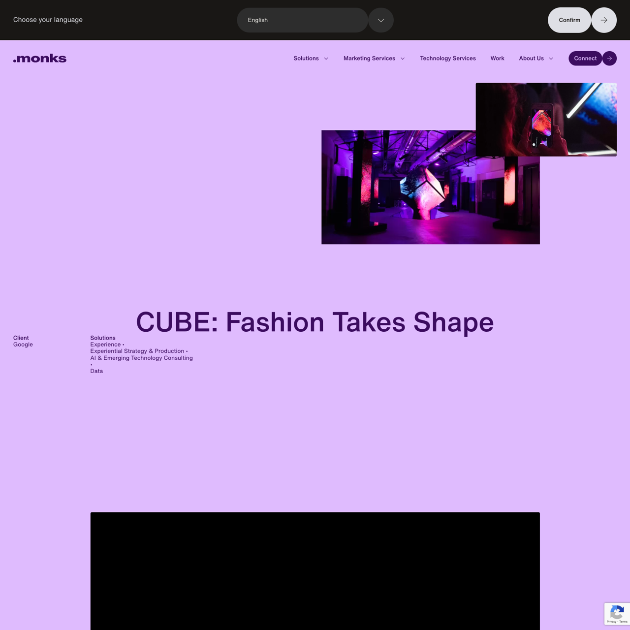 Monks collaborated with Google to create CUBE, an AI-powered tool that visualizes fashion brands' digital presence. By leveraging machine learning, CUBE translates massive data into seven key insights, helping marketers understand consumer perceptions. During a Milan event, 300 C-level executives interacted with the 200m2 art installation, revealing how brands are perceived online. The project highlights the power of data-driven storytelling in the fashion industry.