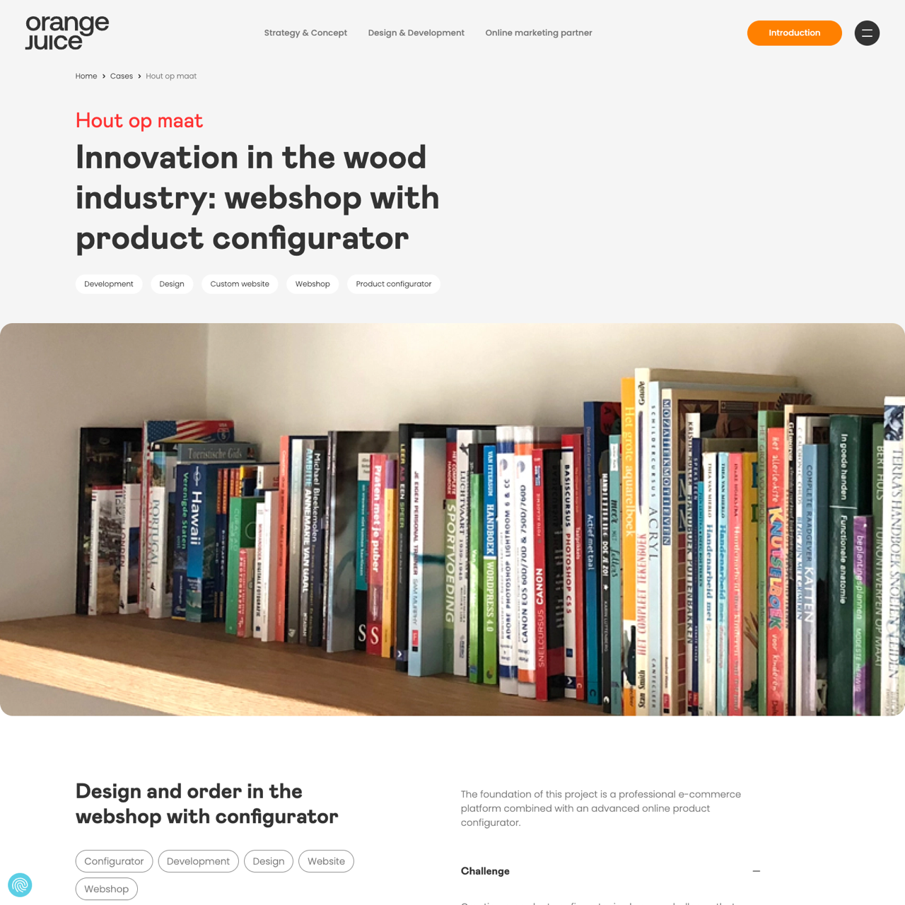Hout op Maat transformed their online presence by developing a product configurator that enabled customers to design custom wooden wall shelves. The solution integrated complex business rules, product variants, and price calculations, ensuring seamless user experience. By expanding from one product category to multiple offerings like 'custom tabletop' and 'custom door,' the platform achieved increased visibility and engagement through a multi-year marketing strategy. The configurator became a key driver of growth, allowing the brand to leverage digital channels effectively.