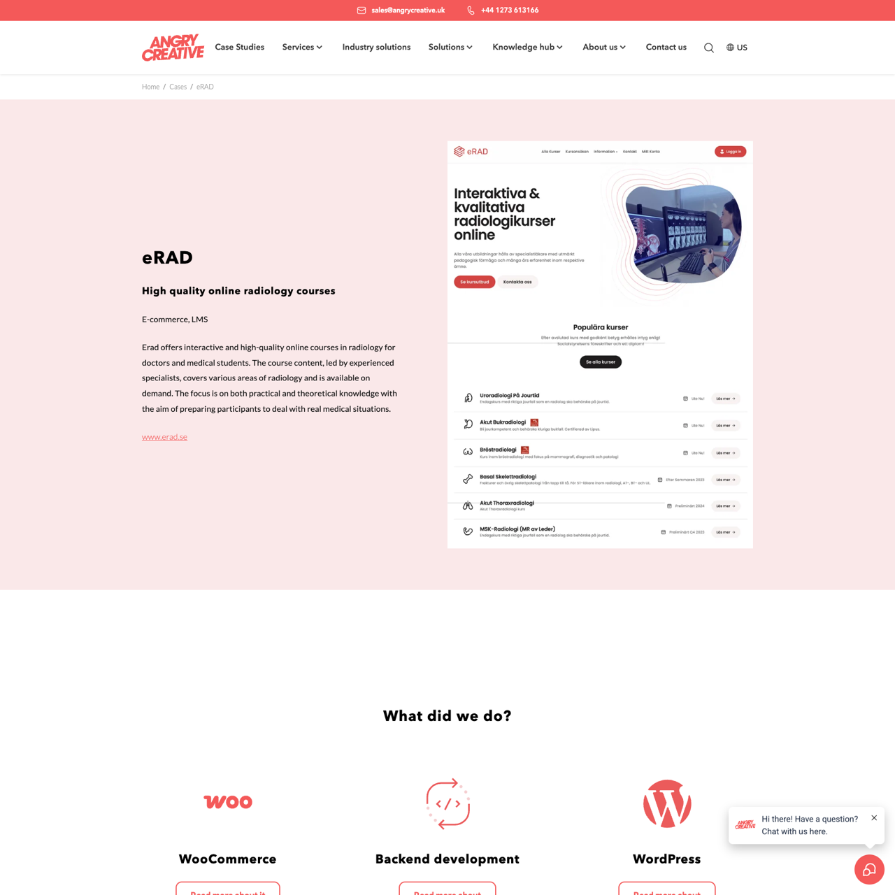 Erad, a leading provider of high-quality online radiology courses, partnered with Angry Creative to develop a customized learning management system (LMS) using the Qala framework. This tailored platform enabled efficient distribution of their specialized radiology courses and expanded their reach, simplifying administrative tasks and improving accessibility for learners. The solution focused on enhancing operational efficiency and expanding digital presence, ensuring a seamless experience for healthcare professionals and students. The implementation of the Qala framework provided a robust foundation for Erad’s digital strategy, allowing them to deliver high-quality content effectively. The project demonstrated the power of a well-designed e-learning platform in transforming educational offerings and supporting professional development in radiology.