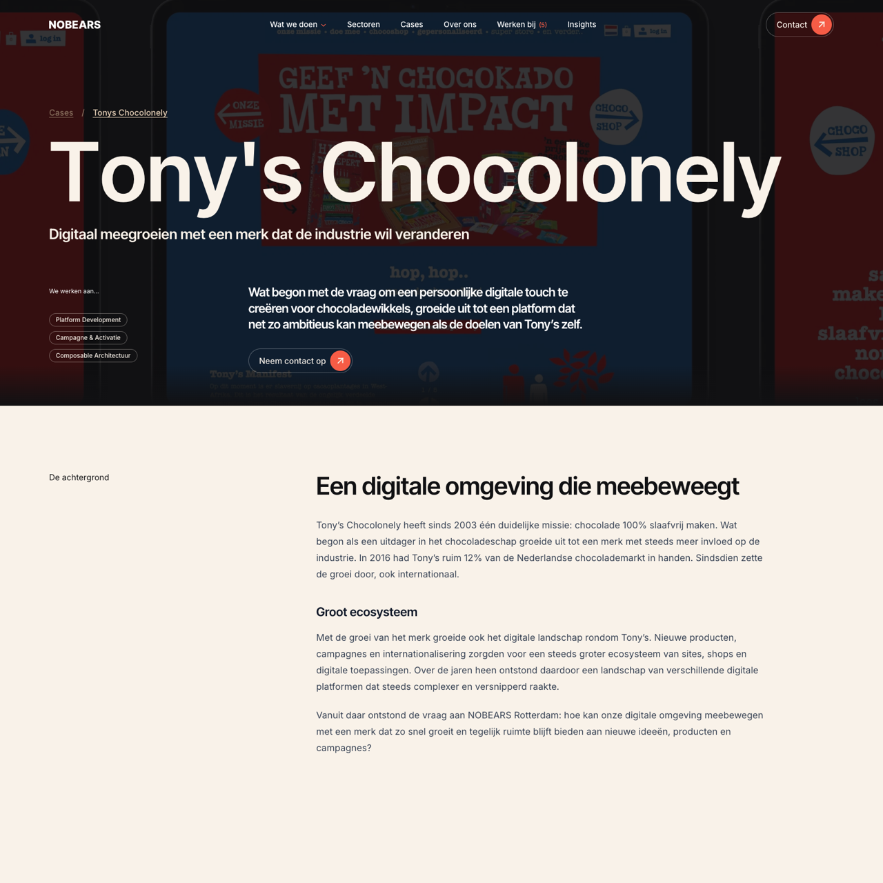 Tony’s Chocolonely, a brand committed to making chocolate free from slavery, faced challenges as its digital presence grew complex. NOBEARS Rotterdam helped restructure their digital ecosystem to support the brand’s rapid expansion while maintaining its core values. By leveraging a community-driven approach, the brand transformed its digital strategy from being a supporting element to the central pillar of its growth. The new platform enables Tony’s to continue innovating and expanding its reach, ensuring that its mission of making chocolate free from slavery remains at the heart of its digital strategy.