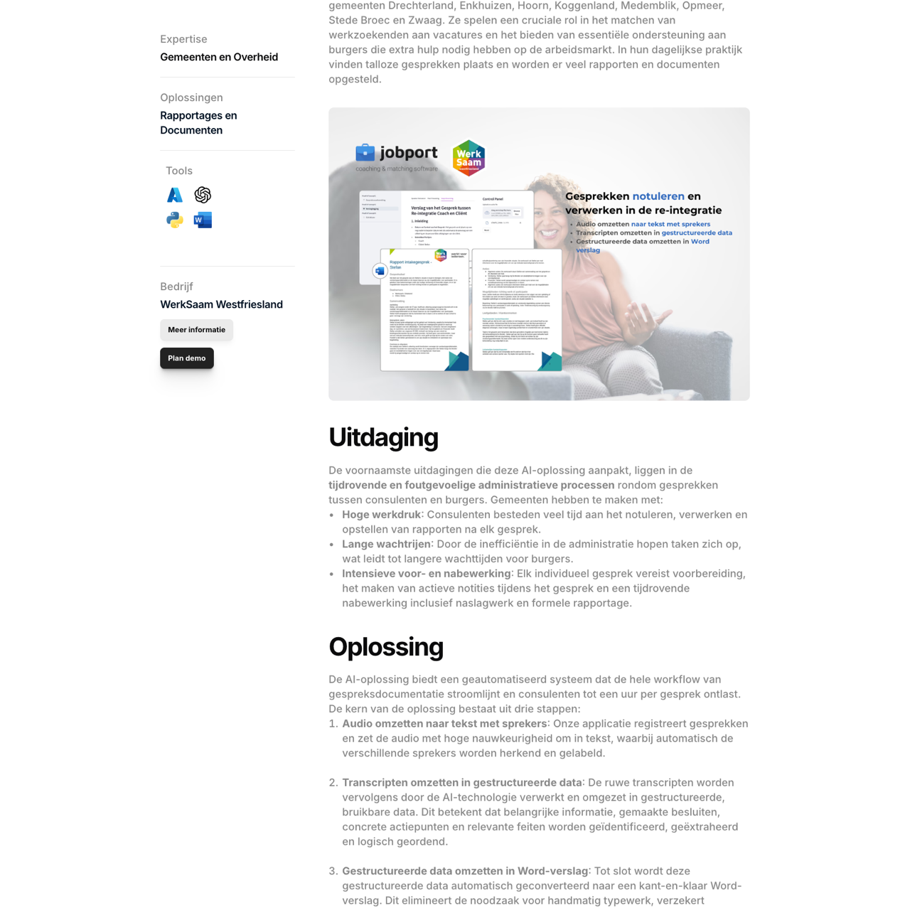 WerkSaam Westfriesland, the leading organization for work and income, implemented an AI-driven solution to automate conversation documentation between consultants and citizens, reducing monthly administrative workload by
