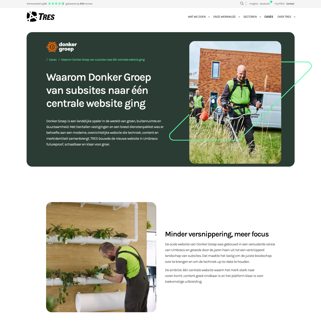 Donker Groep transformed its website from a fragmented collection of subsites into a centralized, scalable platform using Umbraco. The project focused on improving user experience, content visibility, and future scalability. TRES designed a modern, responsive site that aligns with the brand's values and supports ongoing growth. The collaboration with bureau Bont and Travyk ensured a cohesive design and technical implementation, resulting in a platform ready for future expansion and marketing needs.