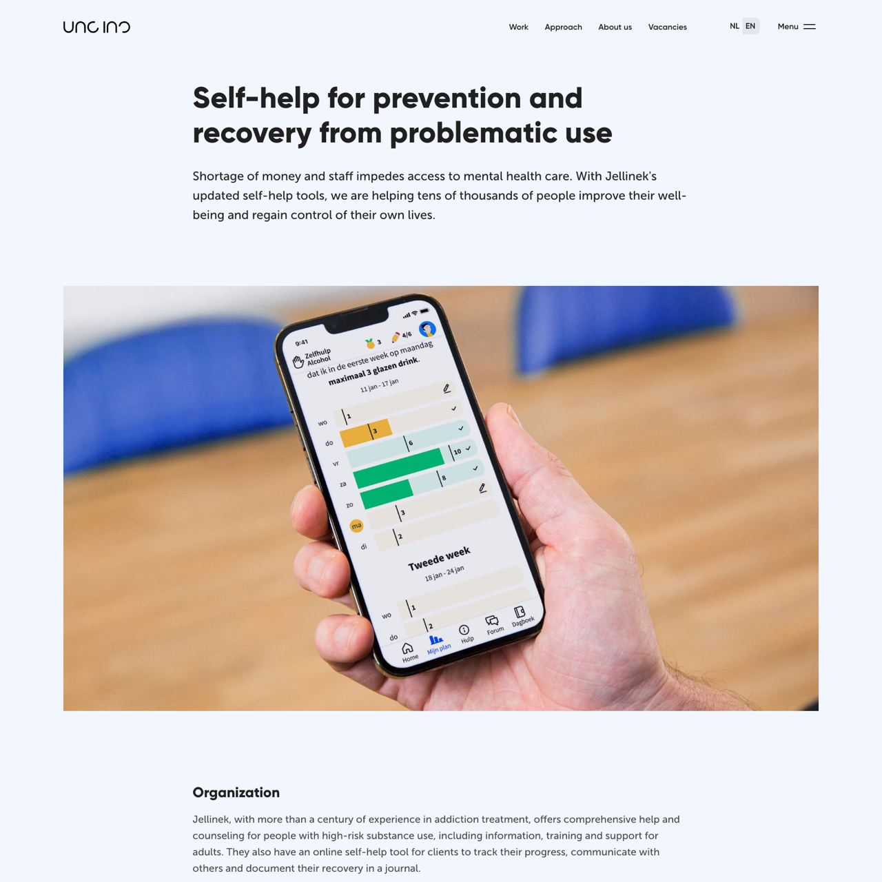 Jellinek's self-help tool was redesigned using a dynamic Drupal multisite and React frontend to address the growing demand for accessible mental health support. By integrating a flexible platform, the solution enabled efficient data management and personalized progress tracking for clients. The tool's user-friendly interface and 'Together Sober' feature specifically supported loved ones, offering tailored guidance and accountability. The redevelopment improved engagement and outcomes, demonstrating how digital innovation can transform addiction recovery. The platform's scalability and security ensured seamless integration with Jellinek's existing systems, enhancing accessibility and effectiveness for thousands of users.