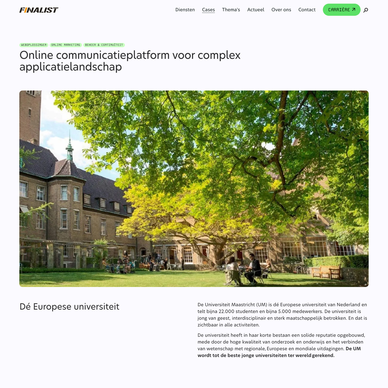 The Universiteit Maastricht successfully migrated its corporate website, intranet, and student portal to Drupal 9/10, enhancing functionality and user experience. Collaborating with the university's team, Finalist delivered a robust platform with three-week sprints, ensuring smooth implementation. The website launched in March 2023, offering improved performance and scalability. The project emphasized collaboration, with the university integrating the new platform into its daily operations. The transition showcased efficient development and strategic planning, demonstrating Drupal's capabilities in complex academic environments.