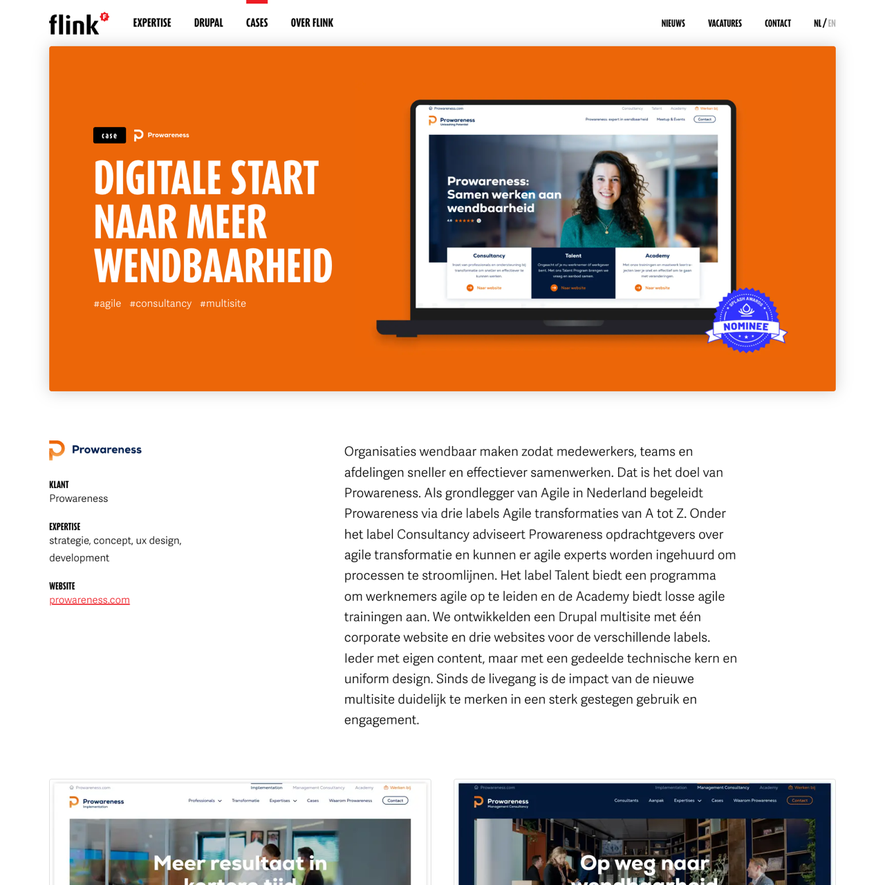 Prowareness transformed its digital presence with a Drupal multisite system, integrating three agile labels—Consultancy, Talent, and Academy—into a unified platform. Each label manages its own website with unique content but shared technical infrastructure, boosting engagement and usability. The system enabled efficient process alignment and scalable growth, with users quickly navigating the platform and discovering valuable content. The success highlighted the benefits of modular design and centralized management, setting a foundation for future expansion. The approach demonstrated how technology can drive agile transformation and user-centric innovation.