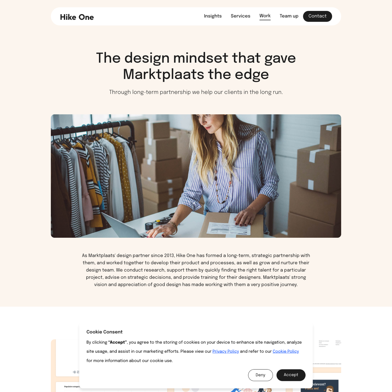 Hike One has served as Marktplaats' design partner since 2013, collaborating to elevate their product development, design processes, and team growth. Through research, talent acquisition, strategic guidance, and training, Hike One has helped refine the platform's user experience, focusing on trust-building for both buyers and sellers. This partnership has enabled Marktplaats to accelerate their UX maturity, leveraging design tools and workflows to innovate their e-commerce ecosystem. The collaboration underscores Hike One's commitment to aligning with Marktplaats' vision to deliver a seamless, trustworthy digital marketplace.