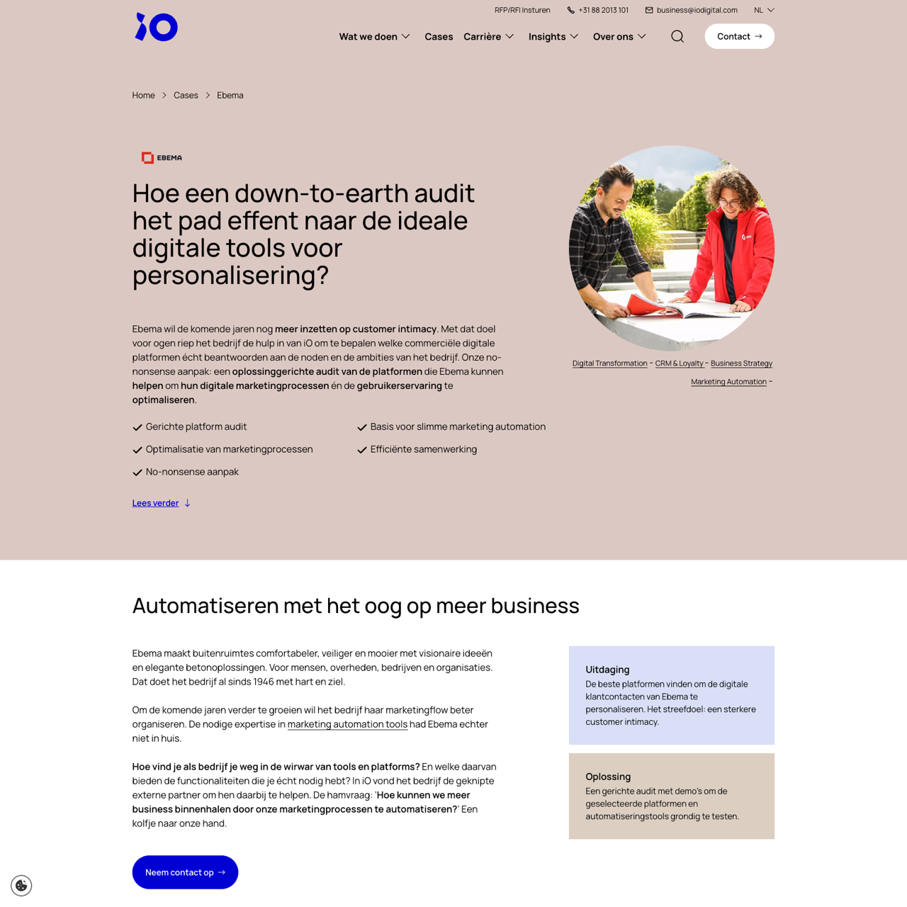 Ebema aimed to grow by optimizing their marketing processes and customer experience. iO conducted a focused audit to identify the right digital platforms for personalization. The project tested key tools and workflows, eliminating outdated solutions. By aligning technology with business goals, Ebema achieved a more efficient marketing automation strategy. The audit revealed how integrating marketing, sales, and content systems could enhance customer engagement and drive business growth.