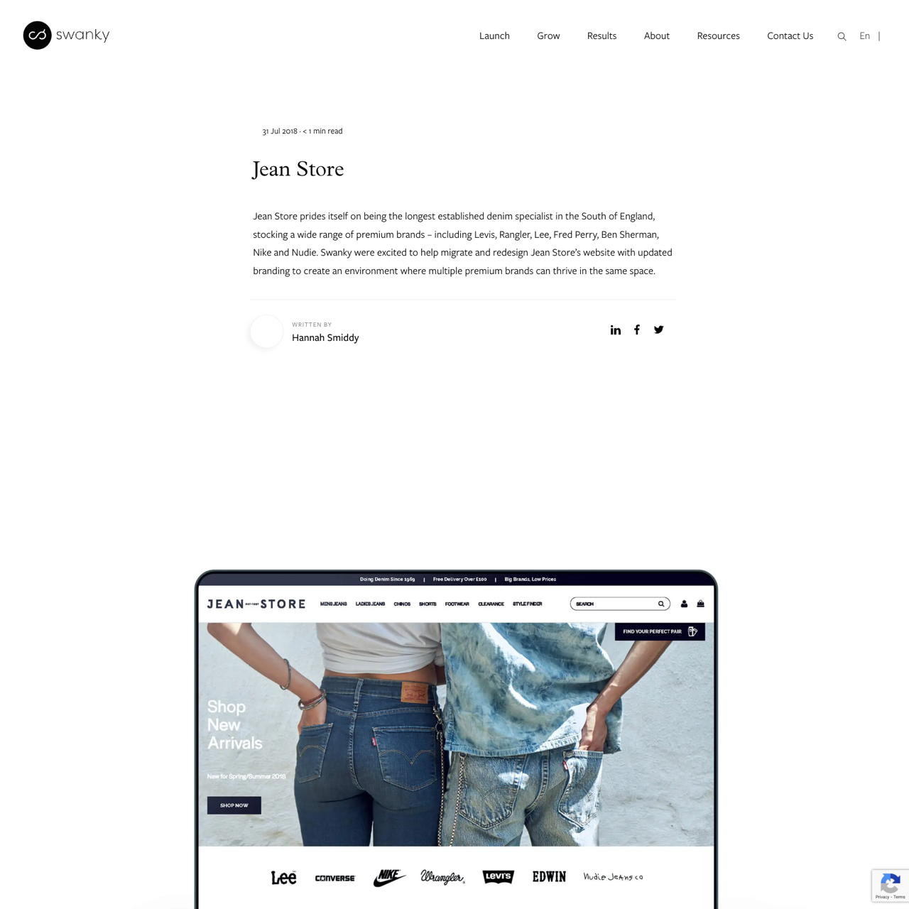 Jean Store, a leading denim specialist in the South of England, partnered with Swanky to modernize its online presence and showcase its curated collection of premium brands. The project involved migrating the site and redesigning it to create a cohesive platform where Levis, Rangler, Lee, Fred Perry, Ben Sherman, Nike, and Nudie could coexist seamlessly. By integrating advanced design principles and user-centric features, the redesign enhanced brand visibility and customer engagement. The result was a more intuitive, visually appealing experience that drove increased traffic and sales. The platform's clean layout and optimized navigation ensured that each brand's unique identity was clearly communicated, fostering a stronger connection between the brand and its audience.