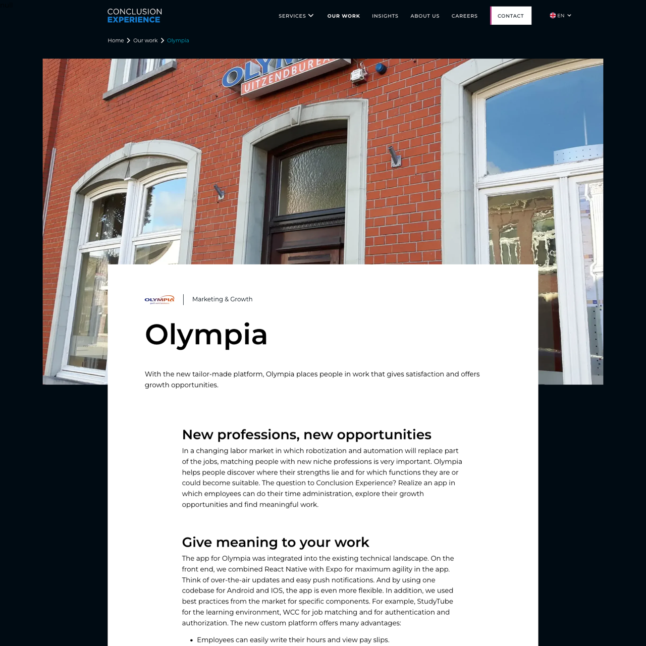 Olympia's new app empowers employees to manage their time, explore growth opportunities, and find meaningful work through a streamlined platform. Built with React Native and Expo, the app offers real-time time tracking, personalized job matches, and tailored learning paths. Features like pay slips and direct employee contact enhance user experience, while the platform's flexibility ensures seamless integration across Android and iOS. In the first seven months, the app attracted 15,000 users, with 27% using it weekly. Courses like 'Flawless Dutch' and 'BHV, the basis' are frequently taken to boost employability. The app has driven over 100 new applications and 400 users through its 'Discover' and 'Develop' modules, demonstrating its impact on employee development and career growth.