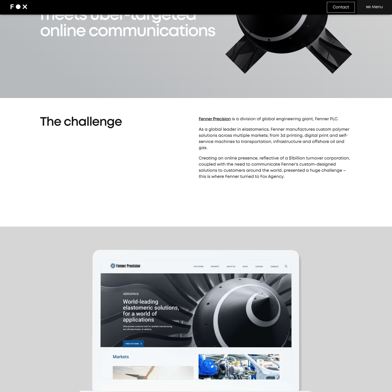 Fox Agency helped Fenner Precision build a global online presence by conducting immersive research and partnering with B2B International to understand customer needs. The new site drove a 50% increase in traffic, with significant growth from non-brand keywords and new customer profiles across Europe and North America. Fox's integrated strategy focused on targeted messaging to highlight Fenner's custom solutions and expand market reach. The results included more effective marketing communications and increased visibility in untapped markets.