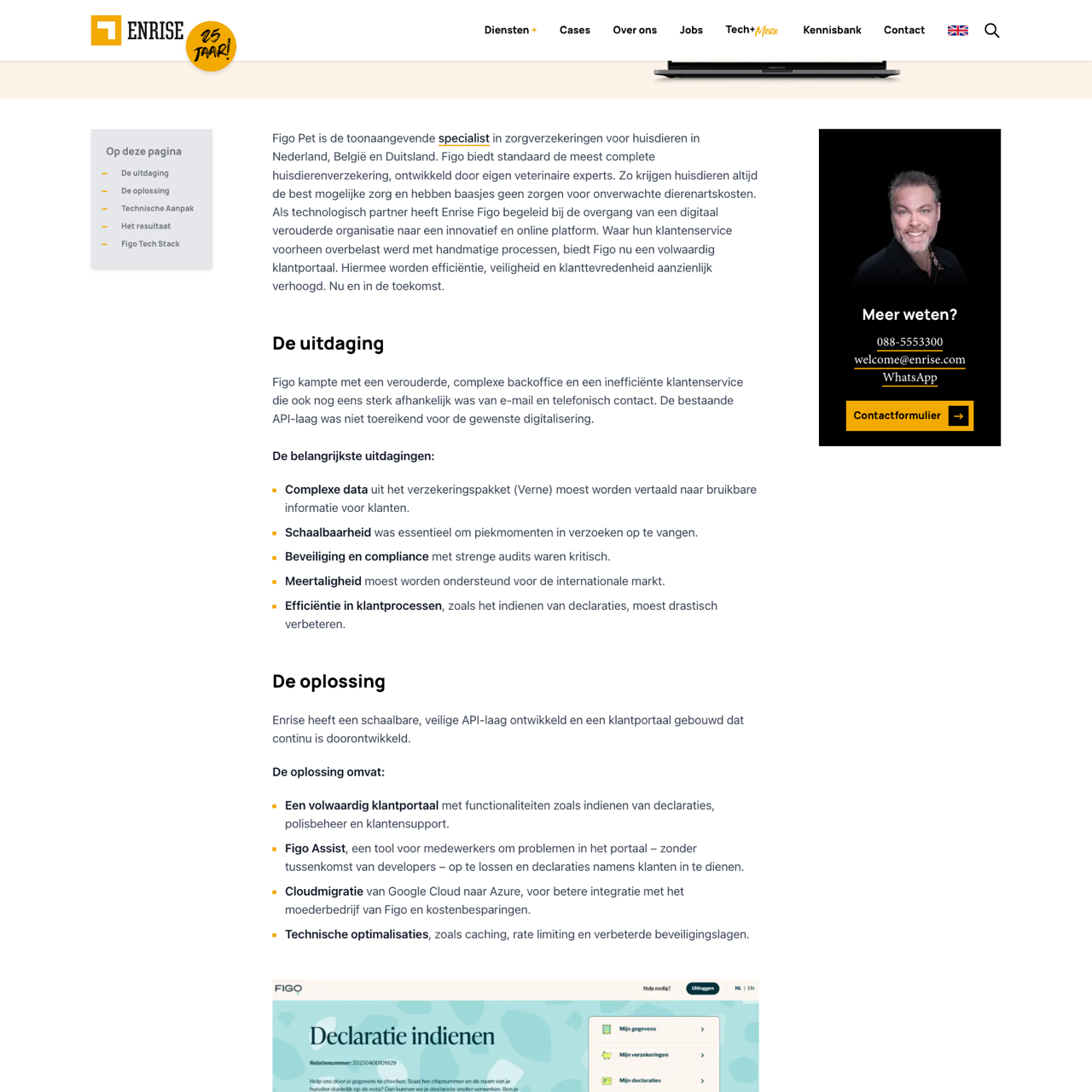 Figo Pet faced challenges with a legacy backoffice and inefficient customer service, requiring a scalable API layer and multilingual support. Enrise developed a secure, cloud-based solution that improved efficiency, compliance, and customer satisfaction. The new platform enables seamless data conversion, real-time claim processing, and 24/7 support, ensuring reliable service for international clients. The migration reduced manual processes, enhanced security, and streamlined operations, delivering a 40% improvement in customer satisfaction while maintaining strict compliance standards.