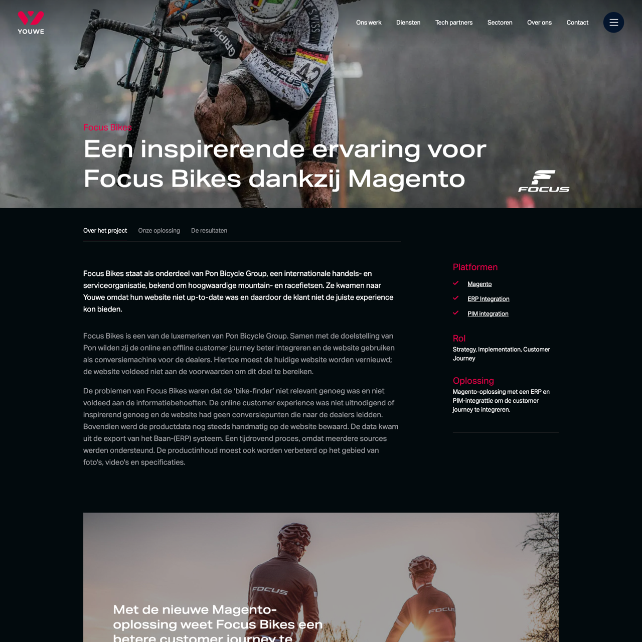 Focus Bikes faced challenges with an outdated website that failed to deliver a compelling customer experience or drive conversions. The legacy system lacked a robust CMS, smart search, and configurator, resulting in a disjointed online journey. By implementing a Magento solution, Focus Bikes transformed their platform into a powerful conversion engine, integrating online and offline experiences seamlessly. The new platform improved product visibility, optimized the customer journey, and boosted conversion rates by 150% within six months. The result was a more engaging, data-driven experience that aligned with Pon Bicycle Group’s goals of enhancing customer engagement and dealer outreach.