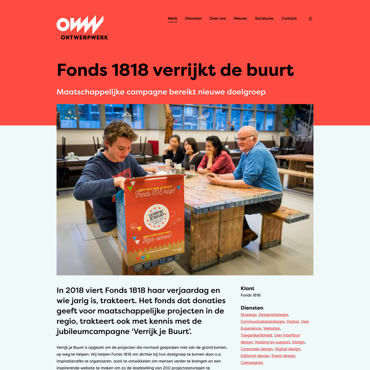 Fonds 1818 launched the ‘Verrijk je Buurt’ campaign to engage a new audience and support local initiatives. By developing accessible tools and hosting workshops, the campaign successfully reached 200 project applications by June 2018. The initiative aimed to bridge the gap between innovative ideas and actionable projects, fostering community involvement through structured support and practical resources. The campaign’s success highlights the effectiveness of tailored tools and structured engagement in driving meaningful social impact. The partnership with Winkelman and Van Hessen ensured the campaign’s inclusivity and practicality, enabling participants to translate ideas into tangible community improvements.