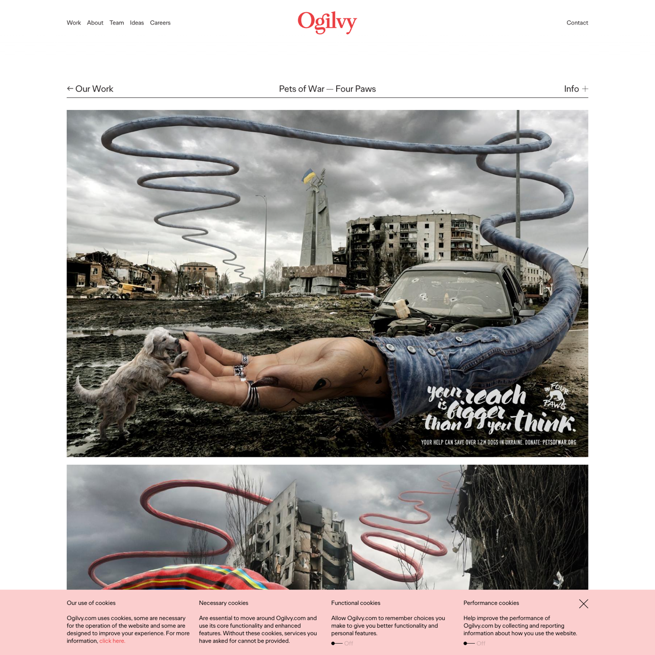 Ogilvy partnered with FOUR PAWS to raise awareness about the crisis facing thousands of pets in Ukraine. The campaign highlighted the plight of 1.2 million displaced animals and encouraged global support through petsofwar.org. By leveraging social media and partnerships, the initiative raised over $2 million in donations, showcasing the power of collective action. The effort not only provided critical resources but also sparked international compassion, demonstrating how small acts can make a profound difference in the lives of vulnerable animals.