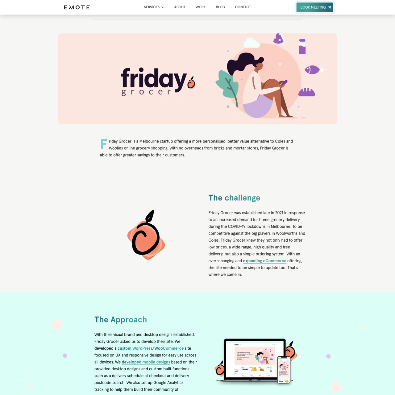 Friday Grocer, a Melbourne-based startup, launched in 2021 to offer competitive online grocery shopping with lower prices and free delivery. Emote Digital developed a custom WordPress/WooCommerce site focused on UX and responsive design, enabling easy updates across all devices. Key features included a delivery schedule at checkout, postcode-based delivery options, and Google Analytics tracking to build customer engagement. The result was a streamlined, user-friendly platform that improved accessibility and drove community growth. The site now supports over 100,000 customers and offers personalized shopping experiences through its unique delivery system.