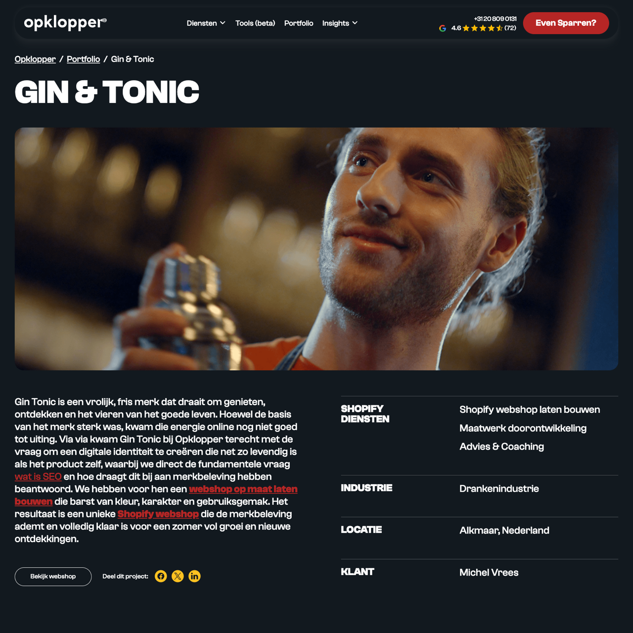 Gin Tonic needed a digital identity that matched its energetic brand image. Opklopper redesigned their Shopify store to be vibrant, functional, and aligned with the brand's values. The new webshop features a fresh design, engaging content, and a seamless user experience, reflecting the brand's spirit of discovery and celebration of life. Located in Alkmaar, Netherlands, the rebranding transformed the shop into a dynamic platform for customers to explore unique gin and tonic combinations. Michel Vrees, the brand's founder, praised the overhaul as a pivotal step in expanding their online presence and connecting with a wider audience.