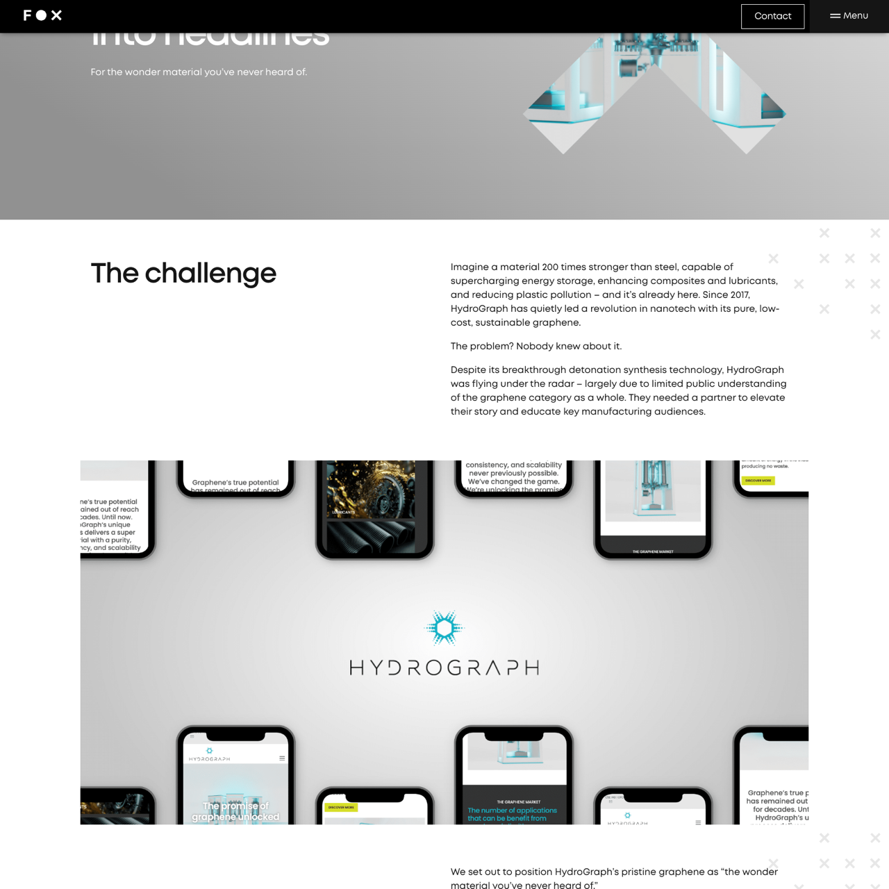 HydroGraph's breakthrough in sustainable graphene faced a lack of public awareness. Fox Agency crafted a PR strategy to educate key manufacturing audiences and elevate the brand's visibility. The campaign delivered 193 media placements, boosting HydroGraph's share of voice by 50% and driving 49.5% YoY sentiment growth. Coverage appeared in leading trade publications, amplifying the material's impact and positioning HydroGraph as a thought leader in nanotech. The campaign successfully translated technical innovation into compelling media narratives, securing industry recognition and expanding HydroGraph's market presence.