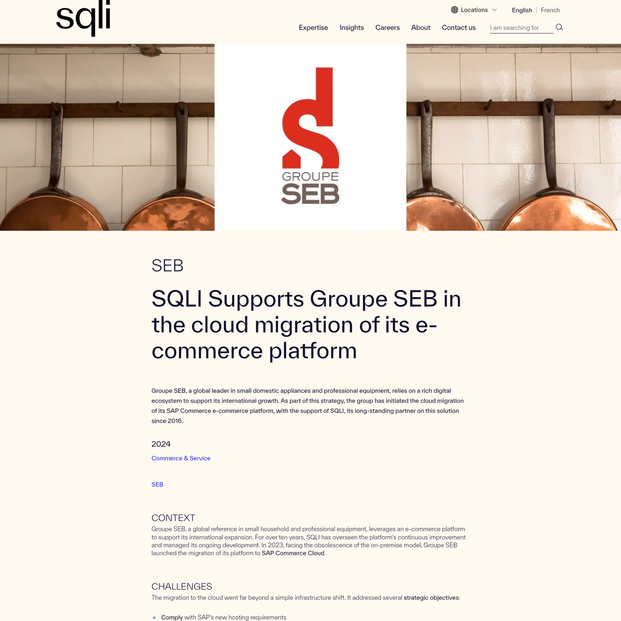 Groupe SEB faced challenges in migrating its e-commerce platform to SAP Commerce Cloud, focusing on compliance, security, and performance. SQLI provided strategic support to align with SAP’s requirements and optimize the platform’s agility. The migration streamlined custom developments, improved performance, and reduced maintenance costs. By redesigning support processes and accelerating update cycles, Groupe SEB achieved a more efficient and scalable e-commerce ecosystem.