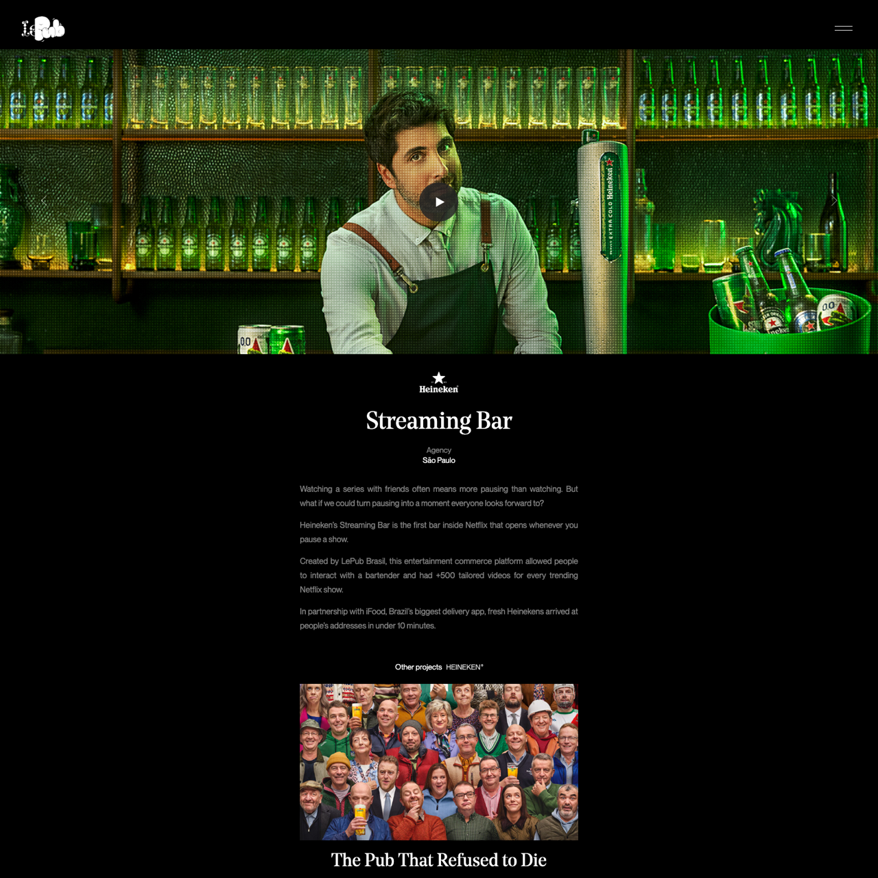 LePub Brasil pioneered the first Netflix bar that activates whenever a viewer pauses a show, turning passive watching into interactive entertainment. By partnering with iFood, the platform delivered fresh Heineken drinks to customers' homes in under 10 minutes, offering +500 tailored videos for every trending show. This innovative approach transformed streaming into a dynamic, personalized experience, proving that pauses can become moments of connection and engagement.