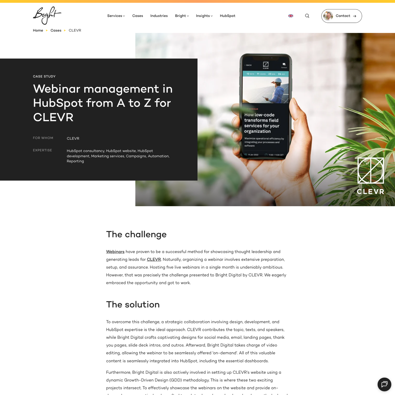Bright Digital transformed CLEVR's webinar strategy by crafting 50 engaging designs and integrating 200 Marketing Qualified Leads (MQLs) through HubSpot. The collaboration focused on creating dynamic templates for webinar overview and detail pages, ensuring seamless on-demand access. By leveraging Growth-Driven Design (GDD), CLEVR achieved a 200% increase in lead generation while maintaining a visually compelling and user-friendly platform. The project highlighted Bright Digital's expertise in aligning content creation with HubSpot's capabilities to drive measurable results.