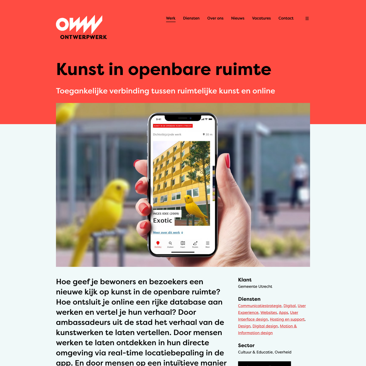 This case study highlights the creation of an interactive art platform for Utrecht, combining Drupal and React to offer real-time location-based access to public art collections. The platform enables users to explore art through intuitive navigation, with the ability to discover new pieces and their stories via a mobile app. The project leverages Google's infrastructure to ensure seamless integration and accessibility. The result is a dynamic, user-friendly experience that enhances engagement with public art in Utrecht. The app, available on Google Play and the App Store, provides a unique way to explore the city's artistic heritage through real-time location data and interactive design.