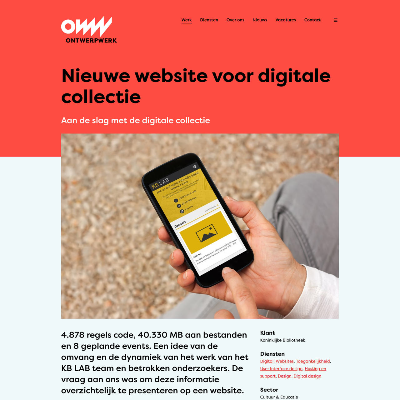The KB LAB team redesigned the website for the digital collection to present complex data in an accessible format. A responsive design with a light/dark theme was created, featuring search and filter tools to help users navigate the growing dataset. The project focused on improving usability through user-centered design, leveraging analytics to refine the experience. The result is a more intuitive platform that enhances research efficiency for scholars and researchers. The website now offers a streamlined interface for exploring datasets and tools, reflecting the KB's commitment to innovation and accessibility.