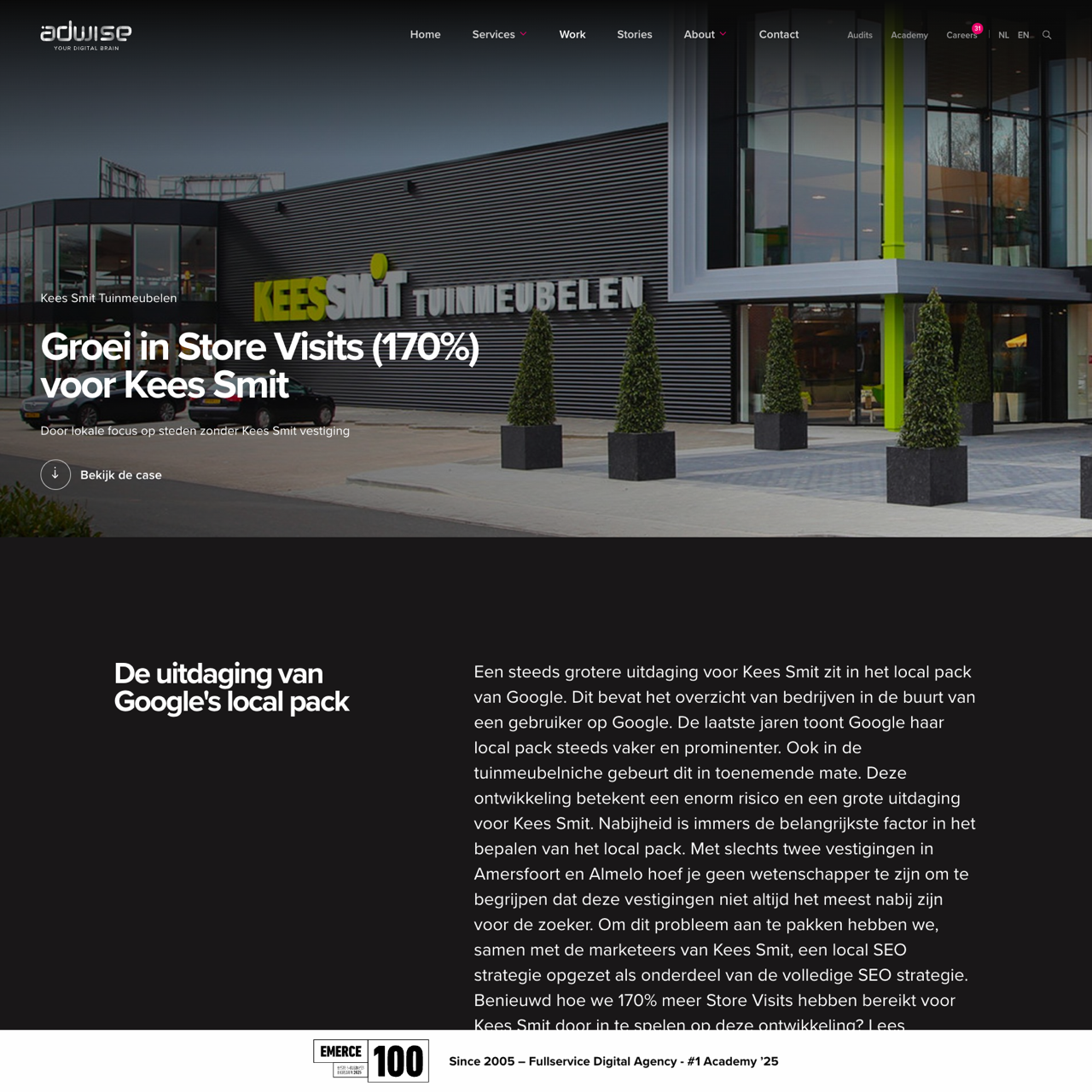 Kees Smit faced challenges with low local pack visibility, leading to reduced store visits and revenue. By optimizing Google My Business, we ensured the brand appeared in local packs across all product groups, driving increased engagement. The strategy resulted in a 35% rise in store visits, 35% growth in Google My Business revenue, and 35% more website traffic. Visibility in Google on focus places improved to 30%, demonstrating the effectiveness of targeted local pack optimization. The campaign highlighted the importance of strategic local presence for business growth.