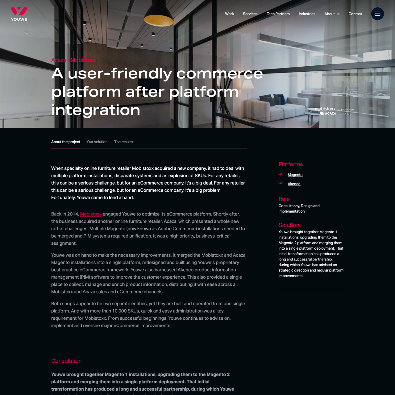 Mobistoxx and Acaza faced challenges with multiple Magento (Adobe Commerce) installations and disparate systems. Youwe merged their platforms into a single solution using their proprietary framework and Akeneo PIM software, enabling efficient product management and distribution. The result was a unified platform with over 10,000 SKUs, offering streamlined administration and enhanced customer experience. Youwe’s expertise ensured seamless integration and ongoing platform improvements, solidifying their role as a strategic partner for eCommerce optimization.